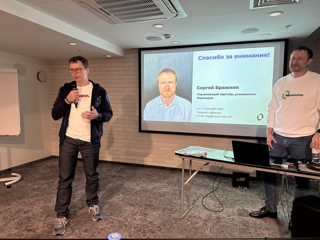 Основное время второго учебного дня посвятили повышению навыков работы с нейросетями. Модератором интенсива выступил управляющий партнёр и преподаватель университета Зерокодер Сергей Бражник.
