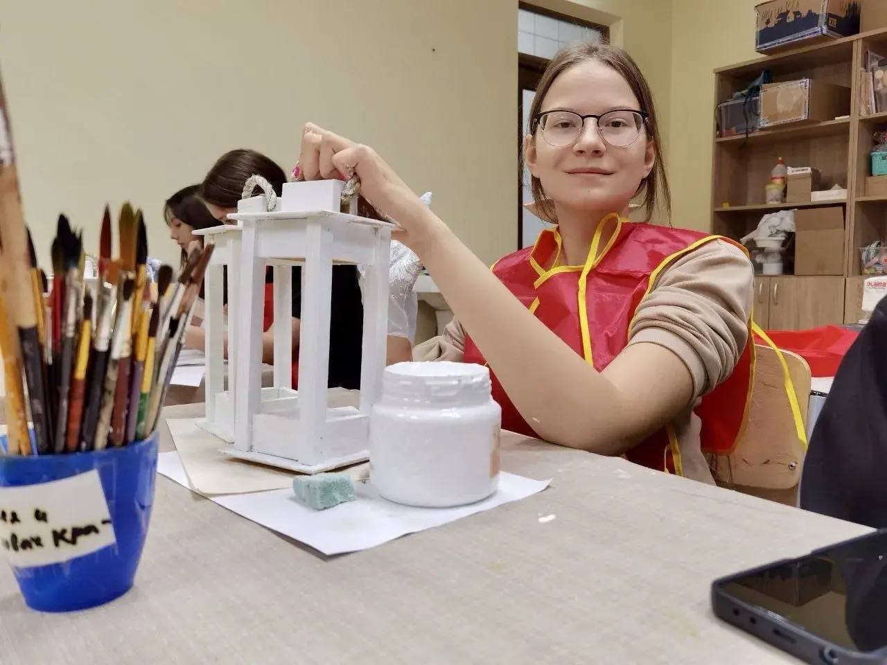 В мастерских воскресной школы уже кипит работа. Простые деревянные, стеклянные и пластиковые заготовки в руках ребят превращаются в уникальные рождественские украшения и сувениры. Малыши кропотливо декорируют стеклянные баночки, создавая изящные подсвечники в зимнем стиле. А старшие ребята заняты более сложной задачей: кто-то грунтует фонари, а кто-то собирает из стабилизированного мха пушистые экологичные ёлочки.