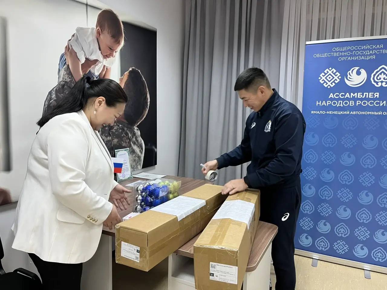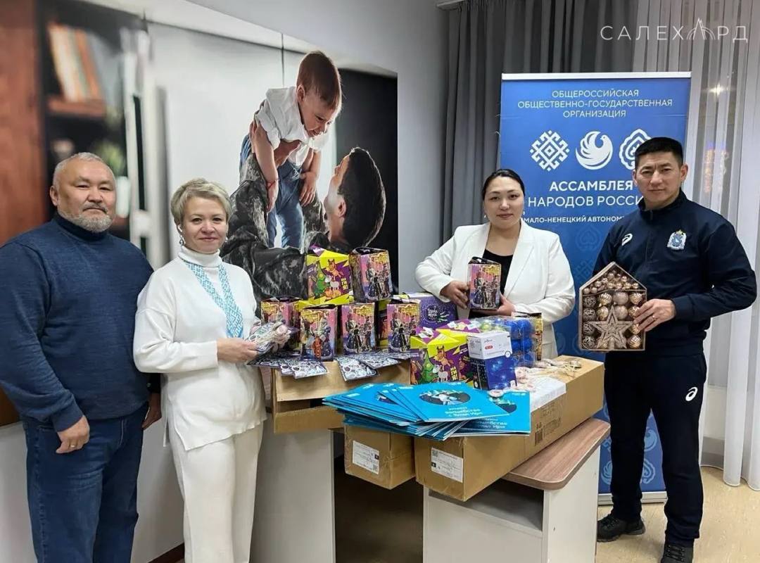 Общественные организации - Ассамблея народов России, Клуб армрестлинга «БЕРКУТ 89», Совет КМНС при главе города и Ассоциация «Ямал-потомкам!» собрали и передали новогодние подарки и ёлки с игрушками для детей из Волновахи.