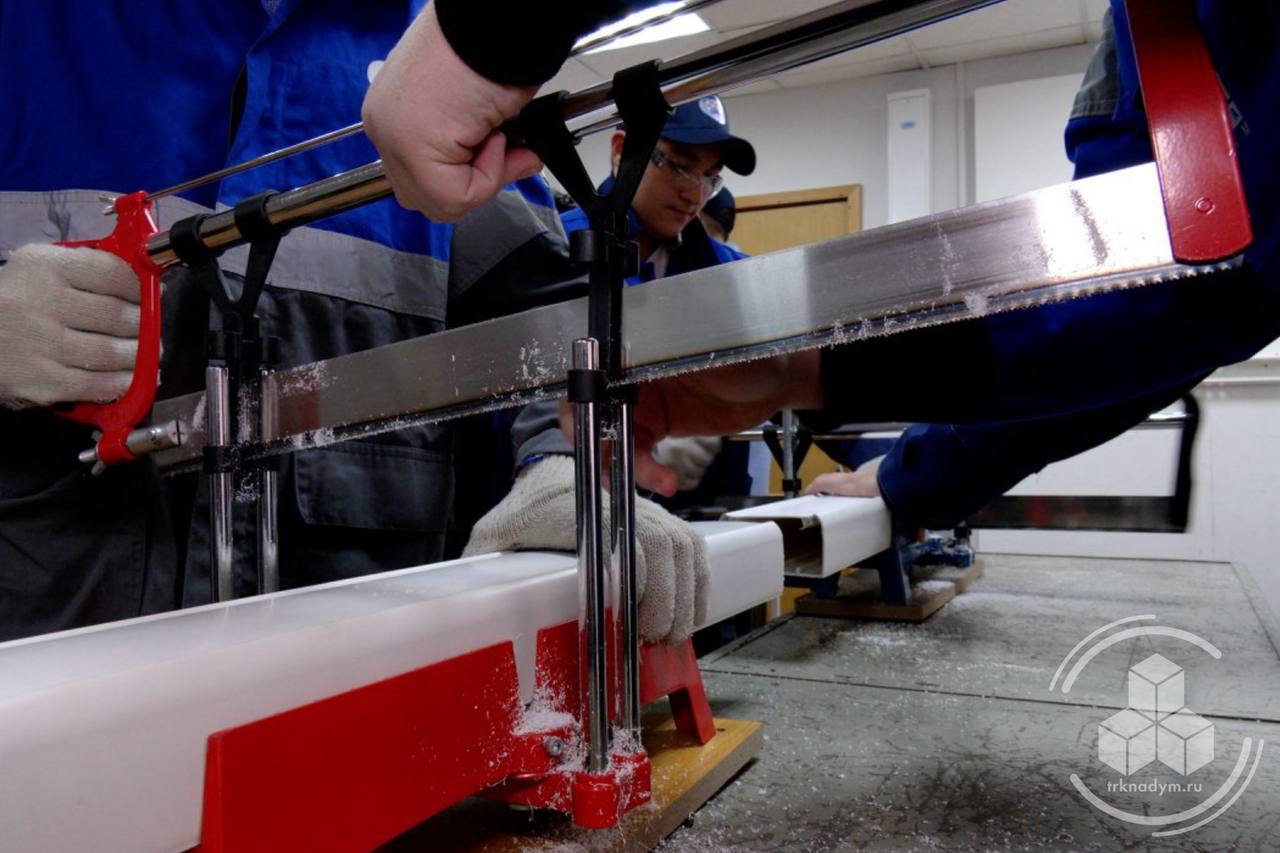 На отделении «Электромонтаж» ребята пилили кабель-каналы, занимались снятием изоляции проводов и опрессовкой кабеля наконечниками.