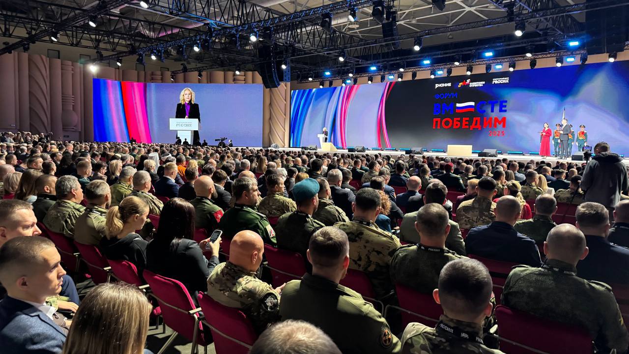 В Москве в Национальном центре «Россия» открылся федеральный форум ветеранов специальной военной операции «Вместе победим!», который собрал около тысячи участников со всей страны.