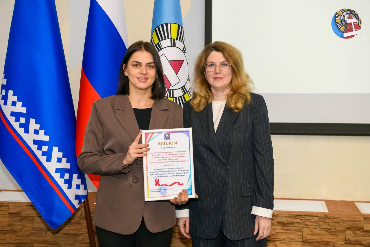 Светлана Фатеева, заместить главы администрации поздравила Людмилу Волову, главного врача окружного Центра СПИД с присвоением звания «Почетный гражданин Ямала». Она также вручила благодарности и грамоты учреждениям - победителям конкурса на лучшую работу по информированию работников по вопросам ВИЧ-инфекции.