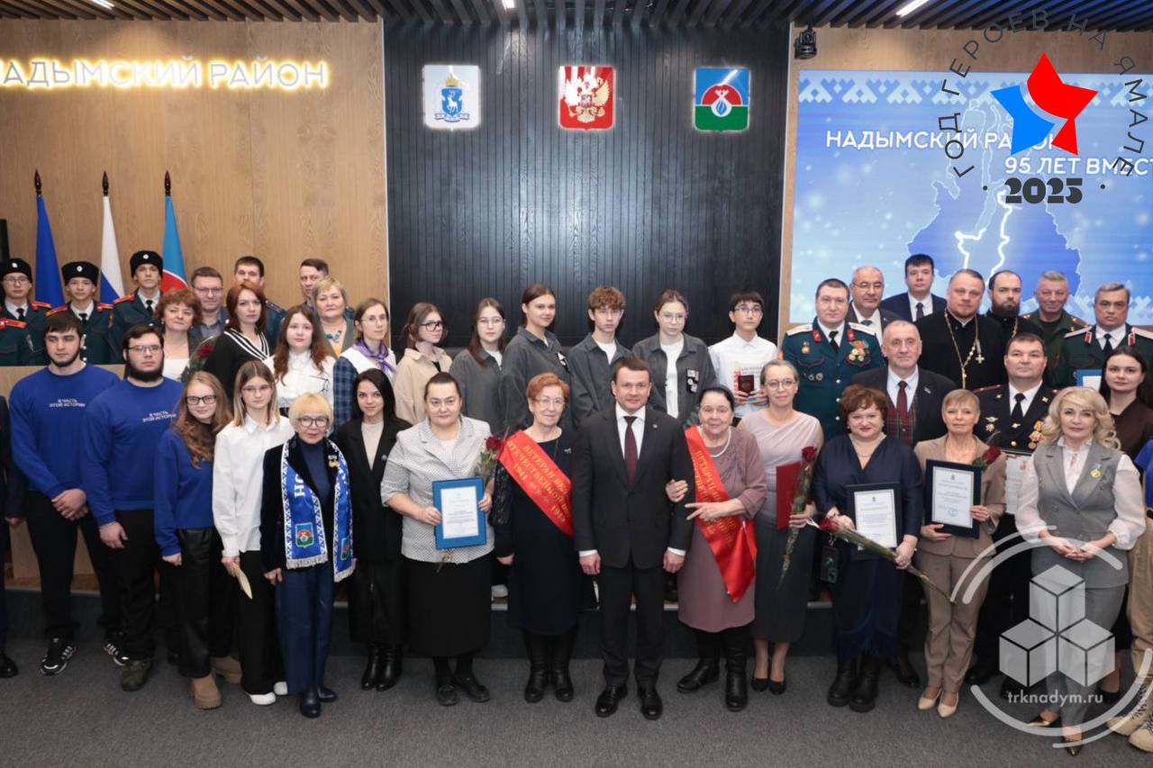 В торжественной обстановке были вручены почётные грамоты, благодарности и благодарственные письма губернатора Ямала, Окружного Законодательного собрания и главы Надымского района гражданам, трудовым коллективам и объединениям за значимый вклад в общественную и волонтёрскую деятельность.