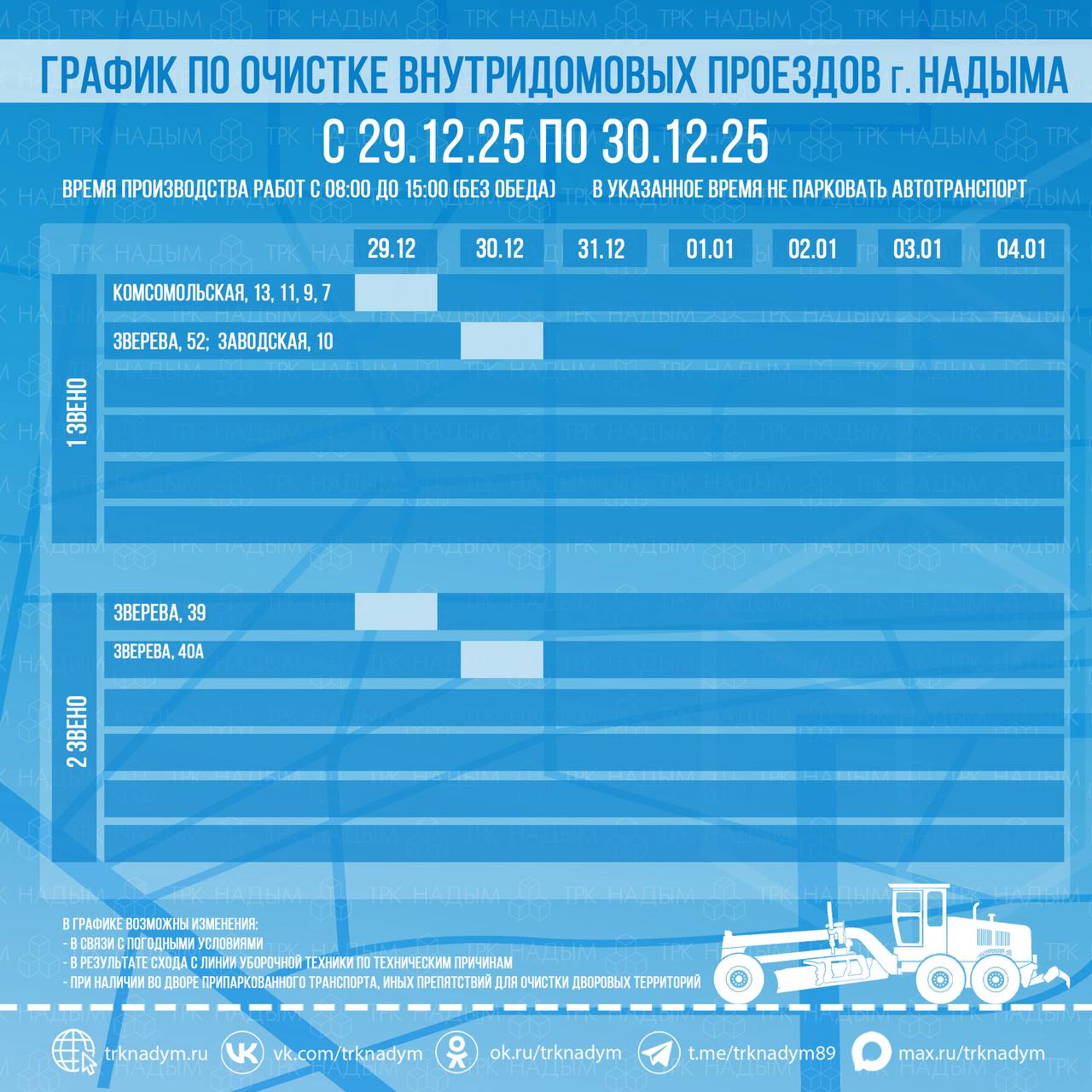 График расчистки снега в Надыме и п. Пангоды с 29 по 30 декабря
