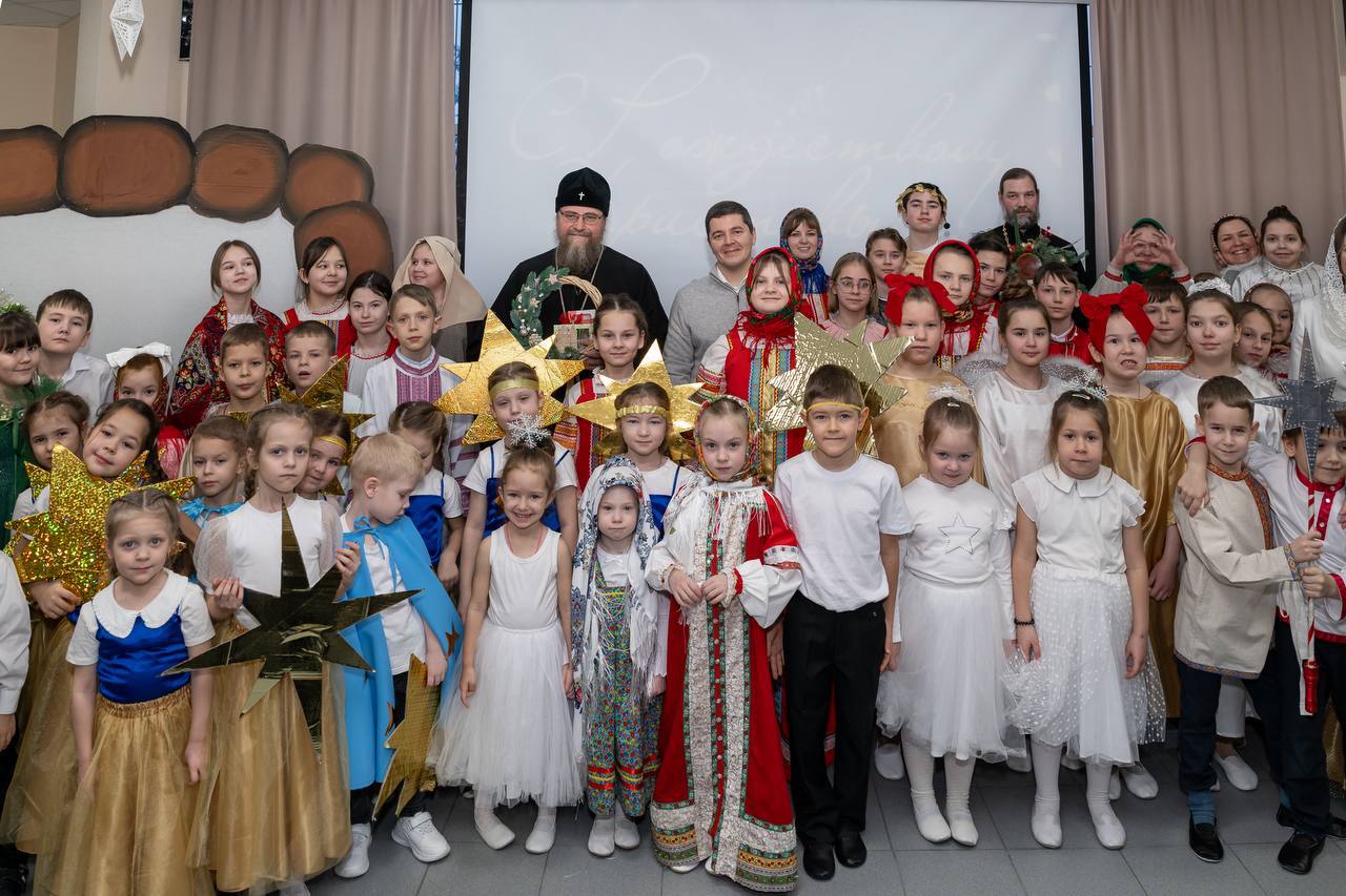 Дмитрий Артюхов и митрополит Николай поздравили воспитанников воскресной школы в Салехарде с Рождеством Христовым. Гости вместе с детьми, учителями и родителями посмотрели праздничный спектакль.