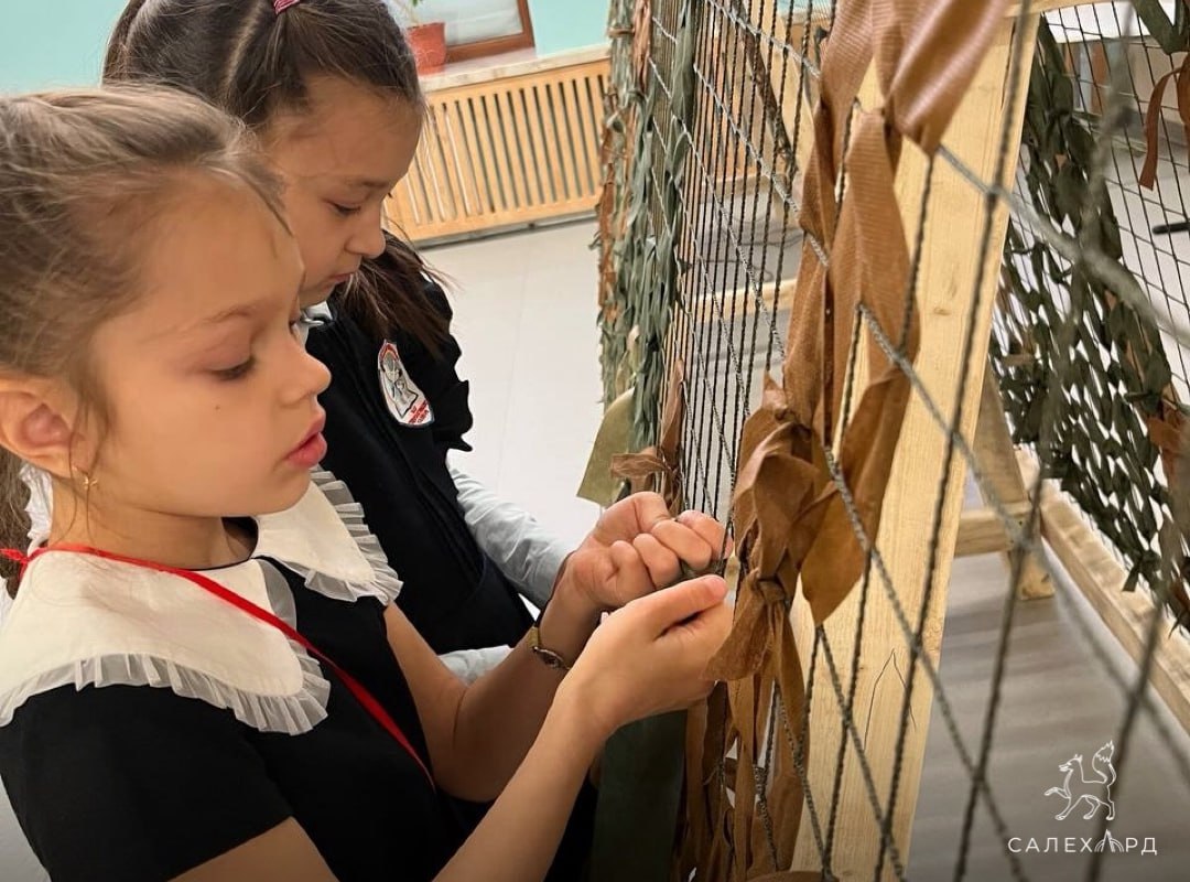 Волонтёры привезли и установили в гимназии станок для плетения, провели обучение — после этого к работе подключились новые помощники. Изготовленные сети планируют отправить военнослужащим.