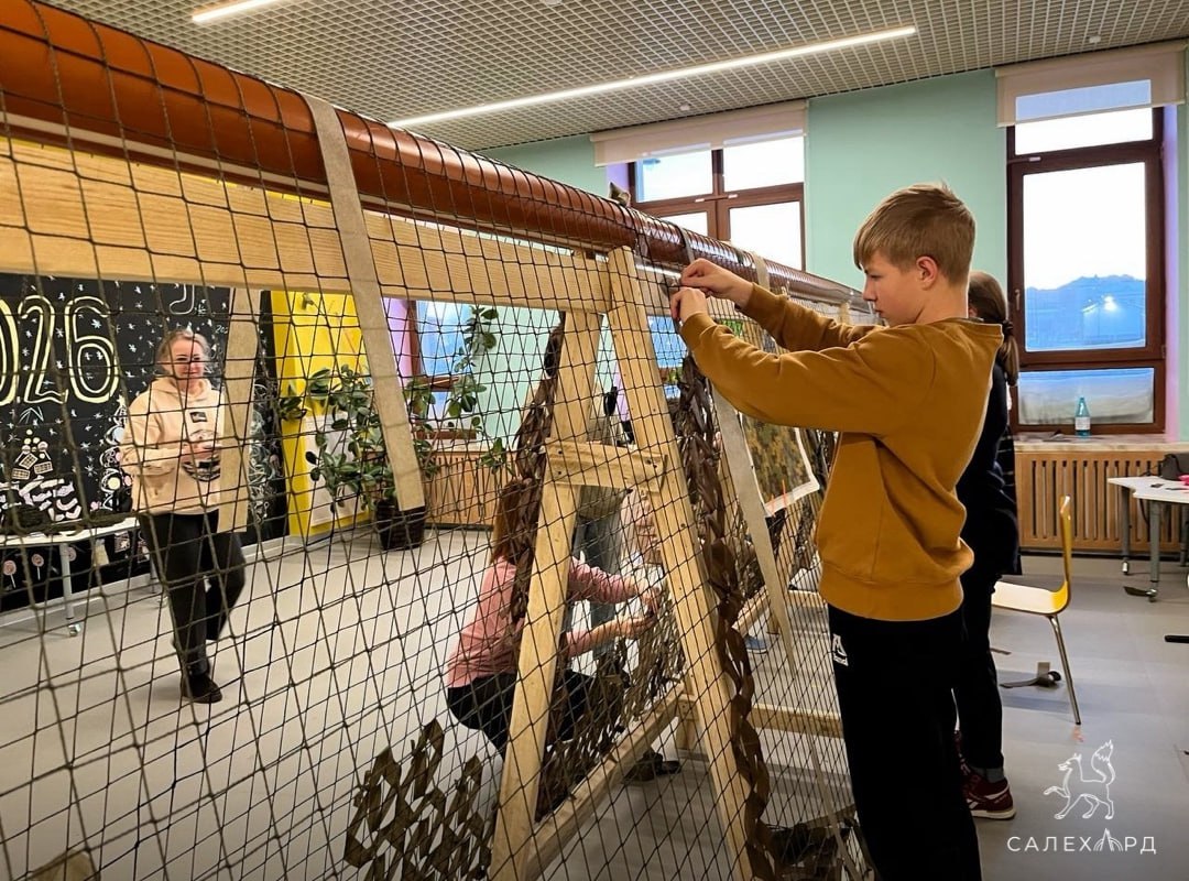 В новогодние каникулы ученики Обдорской гимназии, их родители и учителя присоединились к волонтёрам общественной организации ZOV 89, которая более полутора лет изготавливает маскировочные сети для военнослужащих.