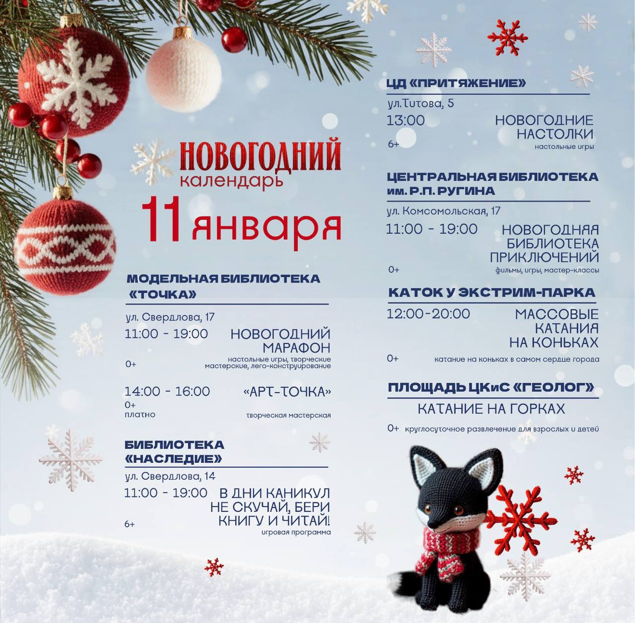 Вас ждут игры, показ добрых новогодних фильмов и увлекательные мастер-классы.