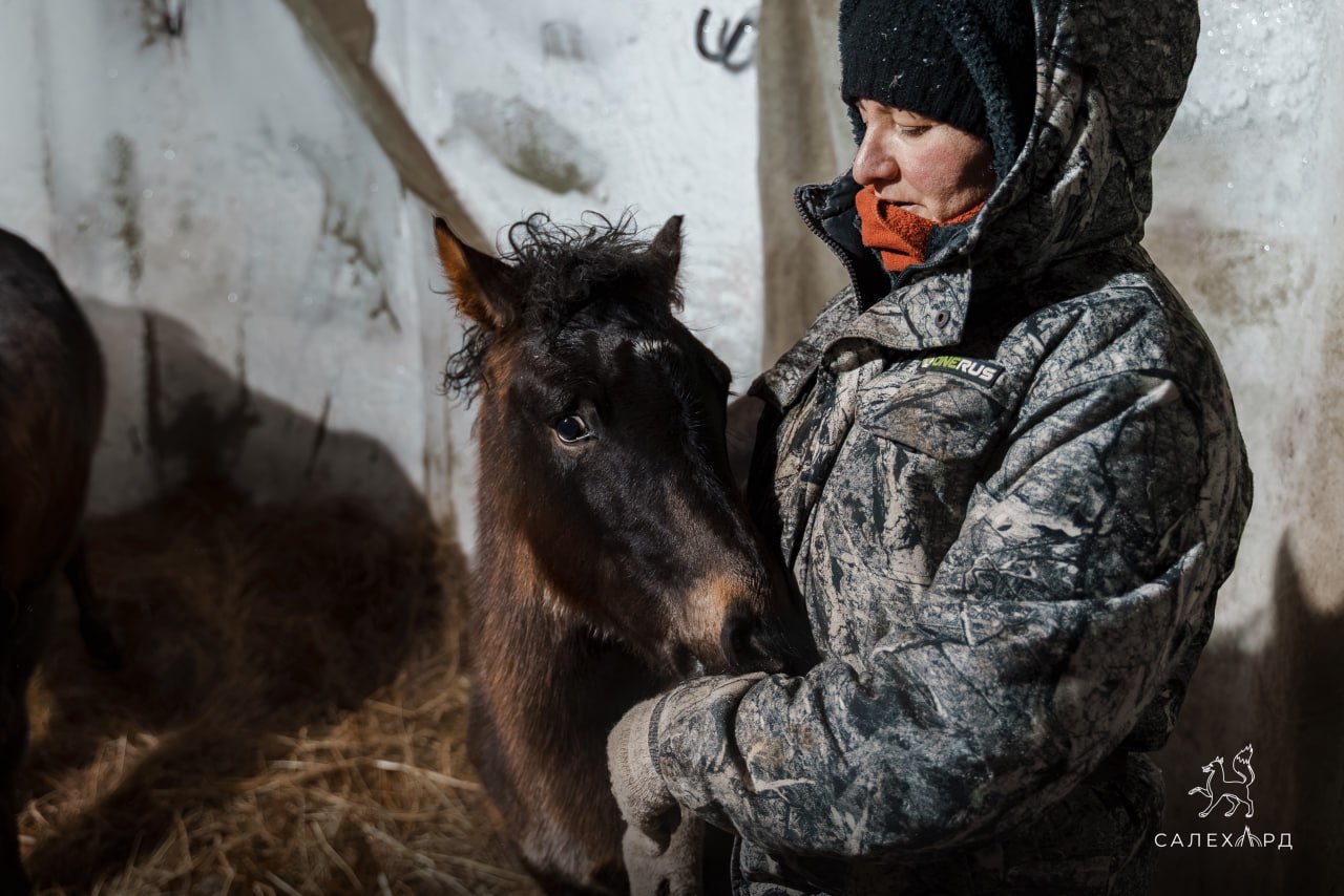Этот гнедой жеребёнок — новое пополнение федерации иппотерапии в Салехарде. Сейчас Изюм учится доверять людям и спокойно реагировать на прикосновения. Он растёт добрым и спокойным — вскоре станет одним из самых тёплых и надёжных «хвостатых терапевтов».