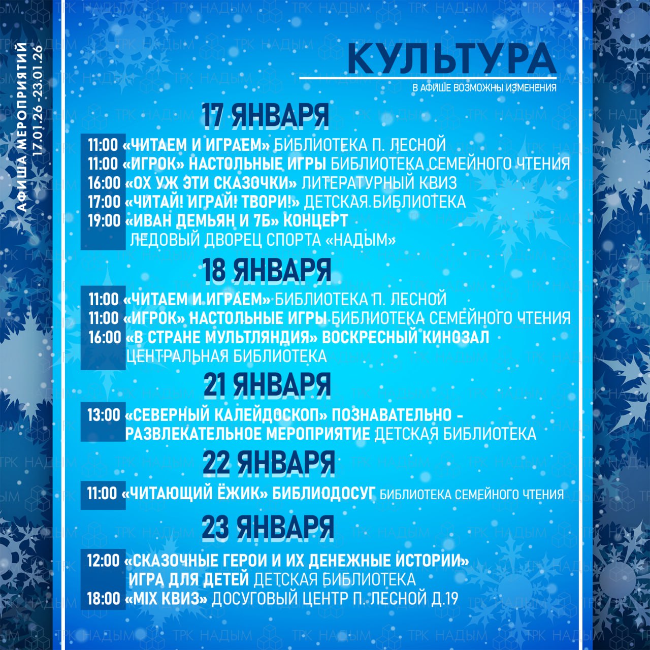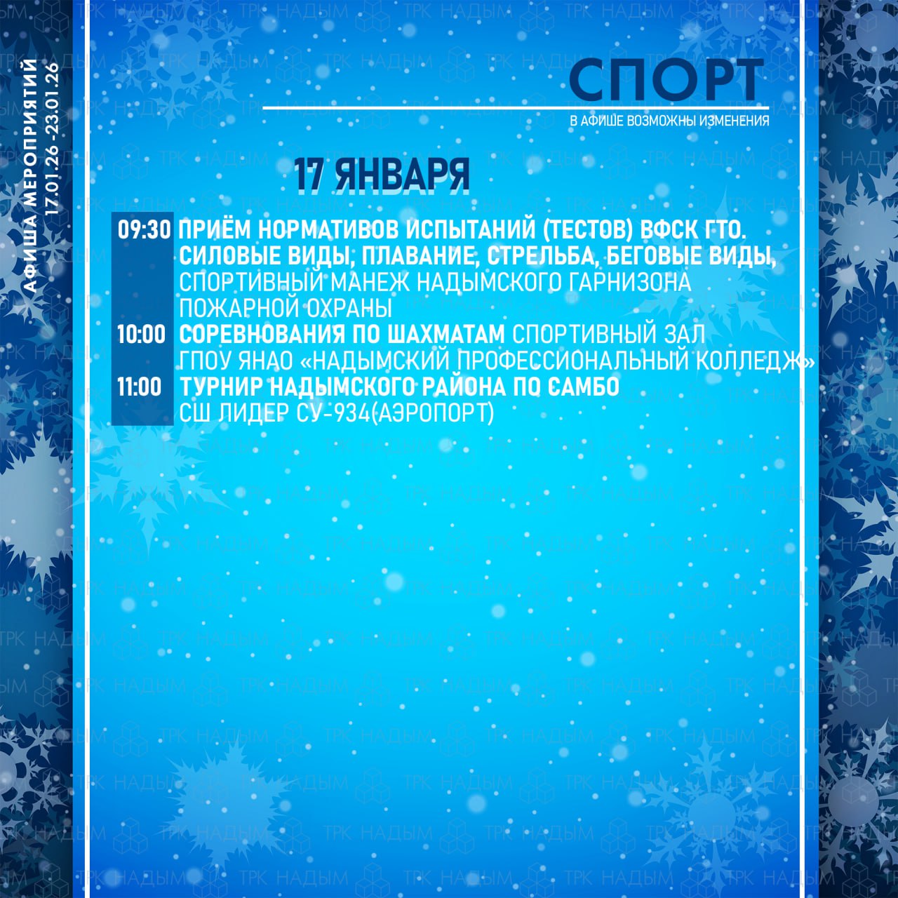 Перекрытие дорогВ связи с мероприятиями, посвящёнными празднованию Крещения Господня, 18-19 января, в Салехарде будут временно перекрыты отдельные участки улично-дорожной сети.С 09:00 до 12:00 19 января- улицаСвердлова от пересечения с улицей К....