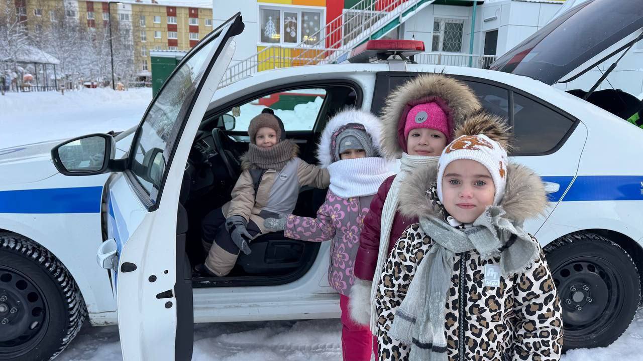 Автоинспекторы Нового Уренгоя провели встречу с воспитанниками детского сада, интерактивный урок по безопасности, и экскурсию;