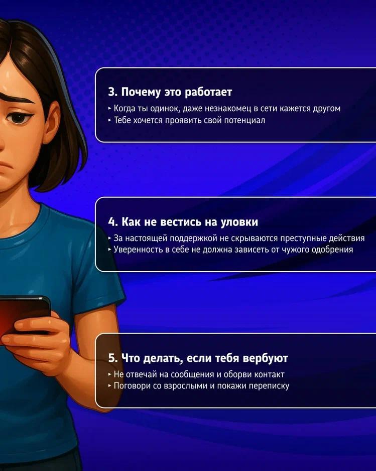 Подростки особенно уязвимы для интернет-вербовщиков. В закрытых чатах и онлайн-сообществах им обещают «важную миссию» или быстрый заработок.