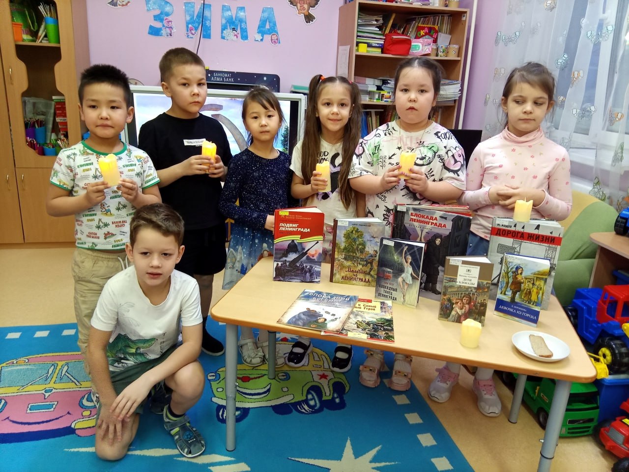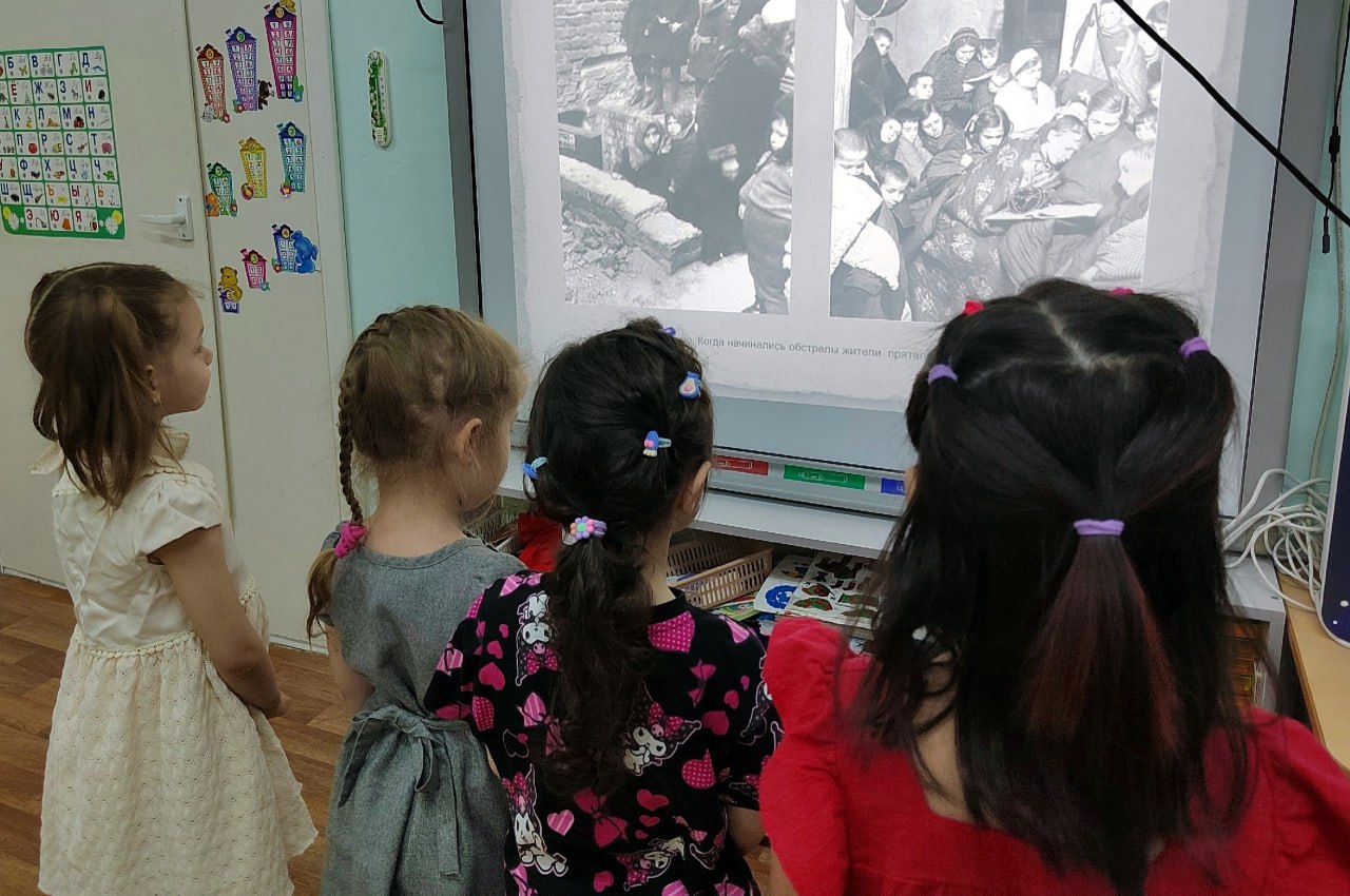 В детский сад «Умка» пришли сотрудники библиотеки «Точка», которые рассказали детям о «Дороге жизни», значении каждого кусочка блокадного хлеба и судьбе ленинградской девочки Тани Савичевой, чьи дневниковые записи стали свидетельством трагедии целого поколения.
