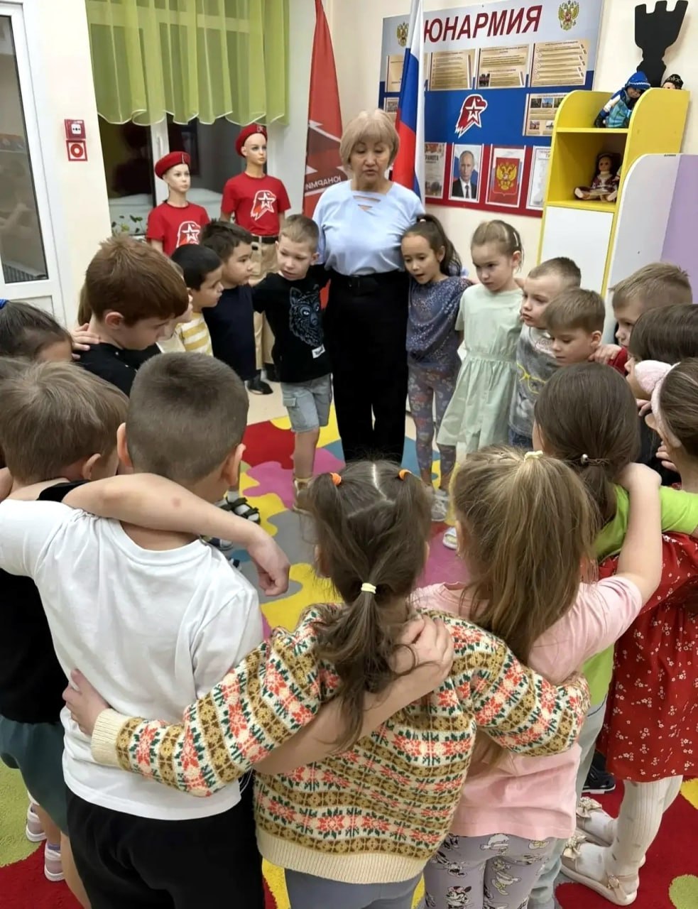 В детском саду «Синяя птица» разговор шёл о силе духа, мужестве и терпении, а также о важности человечности — умении помогать друг другу, делиться, верить и любить свой дом. Вместе с детьми обсудили, почему важно беречь хлеб, что значит защищать семью и Родину и как сохранить мир в наше время.