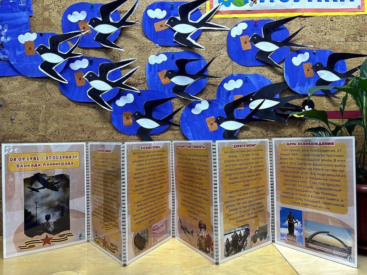 Воспитанники детских садов «Росинка» и «Светлячок» познакомились с символом надежды и жизни тех лет — «Блокадной ласточкой». Весной 1942 года её появление стало для жителей Ленинграда настоящим чудом. В знак веры в добрые вести люди создавали небольшие изображения ласточки с письмом в клюве — рисовали или вырезали из металла. Этот символ стал тихим знаком поддержки и единства.