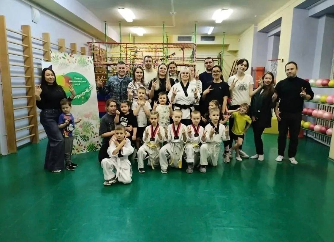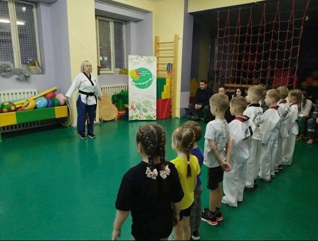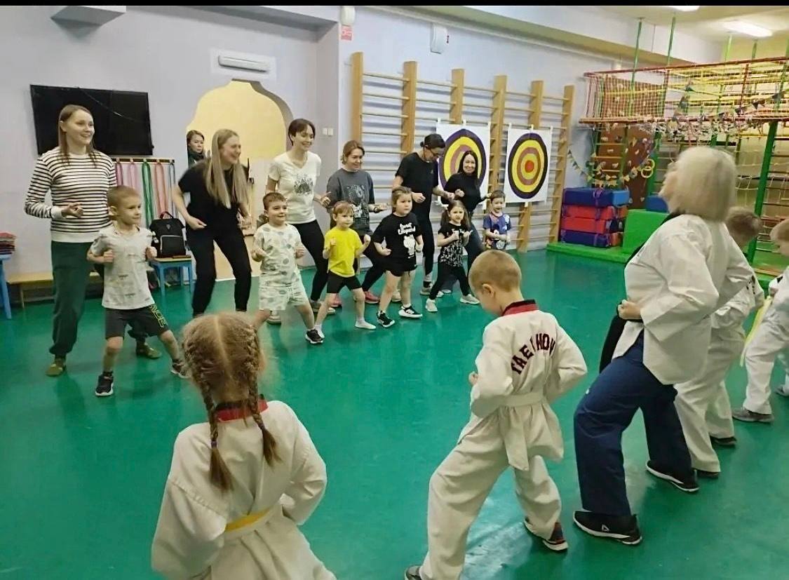 В детском саду Рябинка в клубе Вытворяйка! прошла активная встреча для детей и родителей. Участники в игровой форме познакомились с тхэквондо на мастерклассе Кунгфу Панда? Нет, тхэквондо!, сделали разминку и поработали в парах.