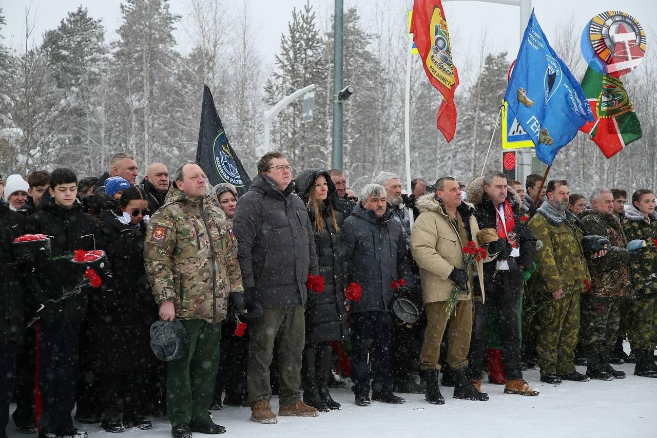 Воины-афганцы, ветераны боевых действий, представители общественных организаций, ребята, занимающиеся в военно-патриотических клубах, Андрей Власов, заместитель главы администрации города Ноябрьска и Алла Умецкая, председатель местной Думы возложили цветы к памятнику «Воину - защитнику».