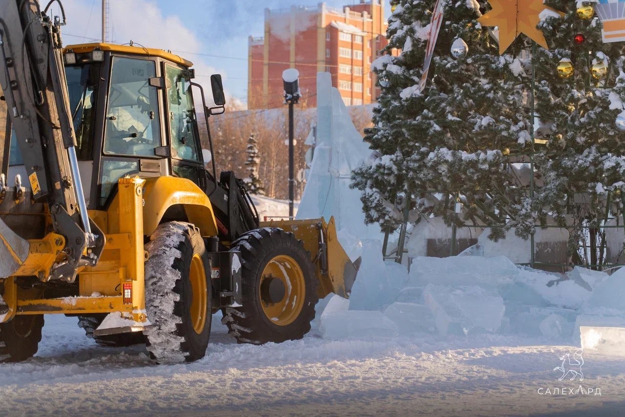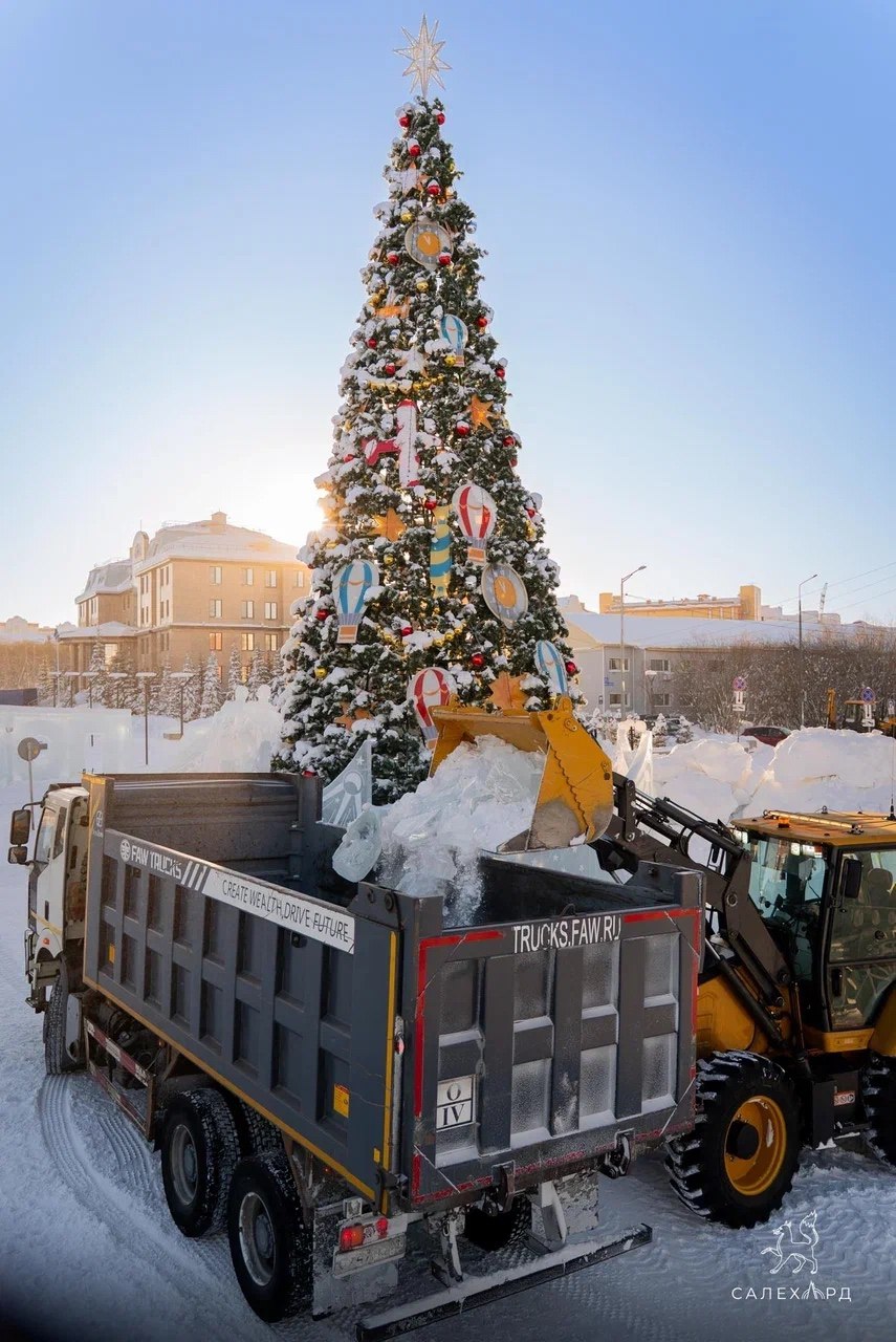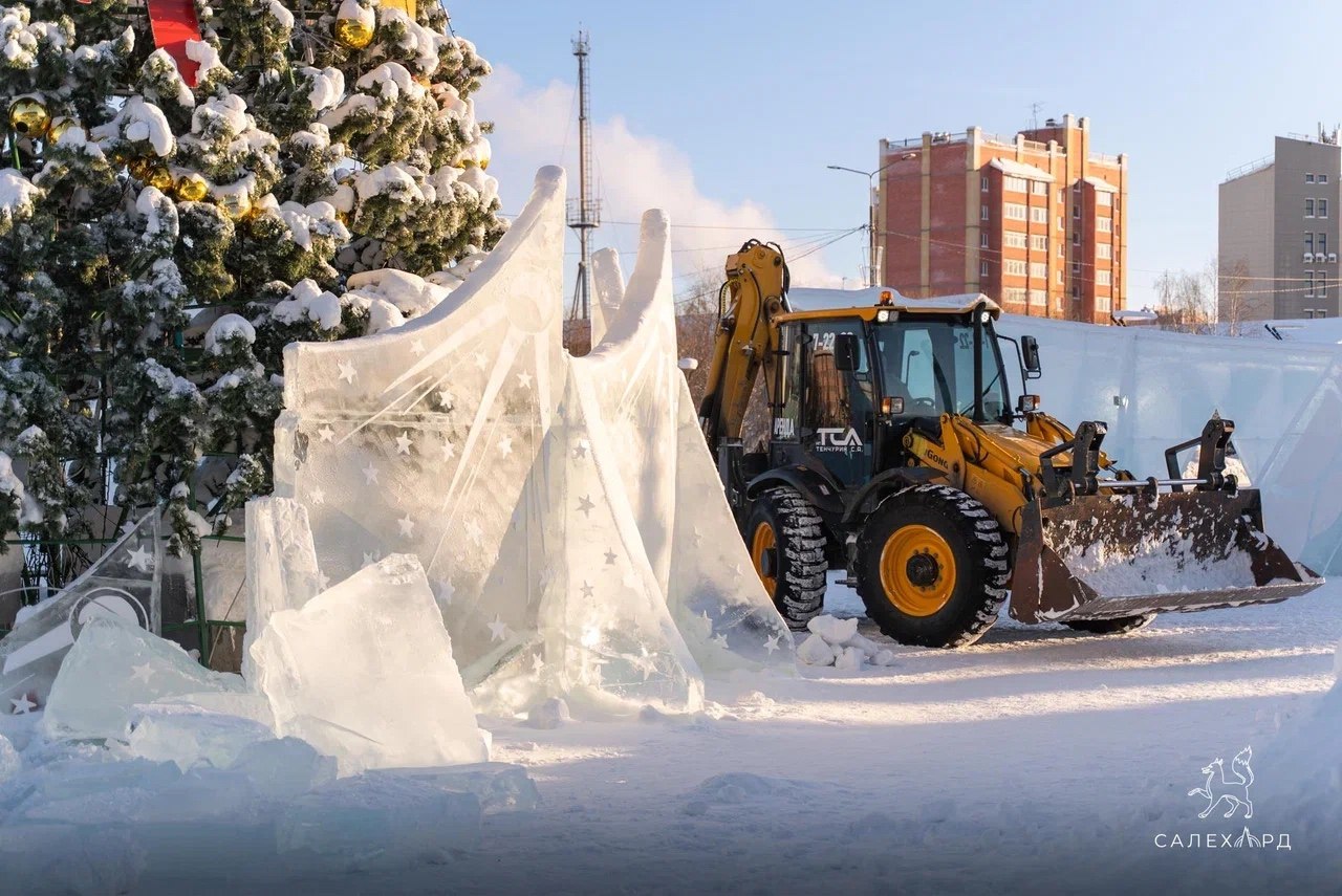 Новогодние украшения с ёлки у «Геолога» пора складывать в коробки. С ледяными скульптурами, как и с праздничной елью, тоже придётся попрощаться.