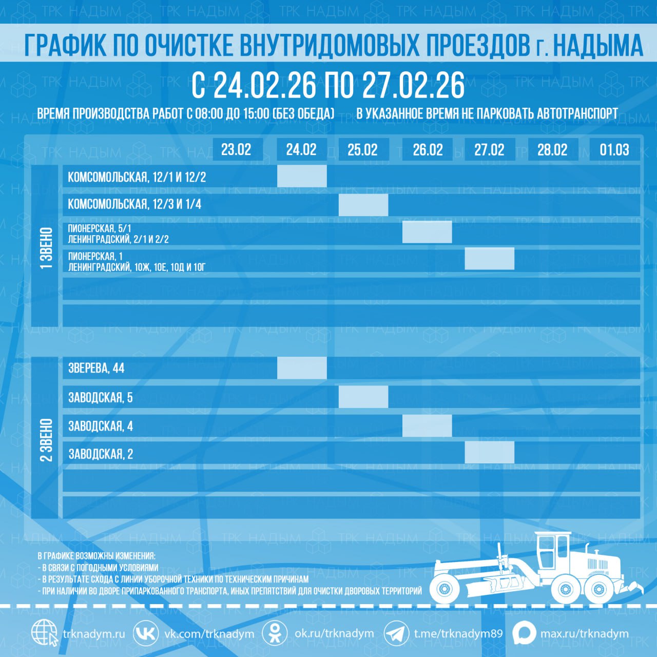 График может быть изменён, за актуальной информацией по изменениям на неделе читайте в группе ВКонтакте НАДЫМГОРАВТОДОР