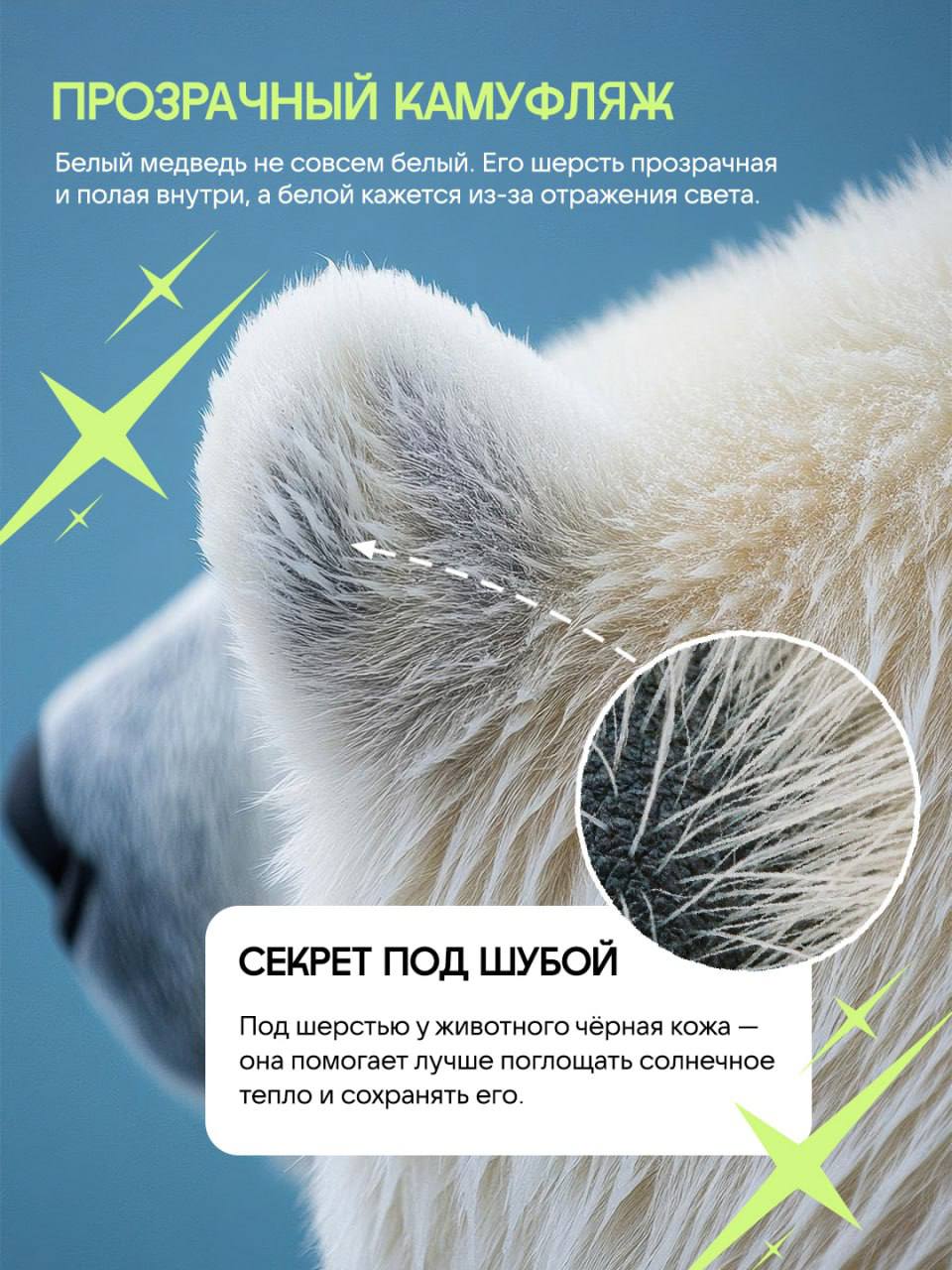 Сегодня День белого медведя — идеальный повод узнать это могучее животное поближе. Он может проплыть километры в ледяной воде, учуять добычу под толщей снега, пережить морозы, которые нам кажутся невозможными. Но даже для хозяина льдов меняющийся климат — серьёзная угроза.