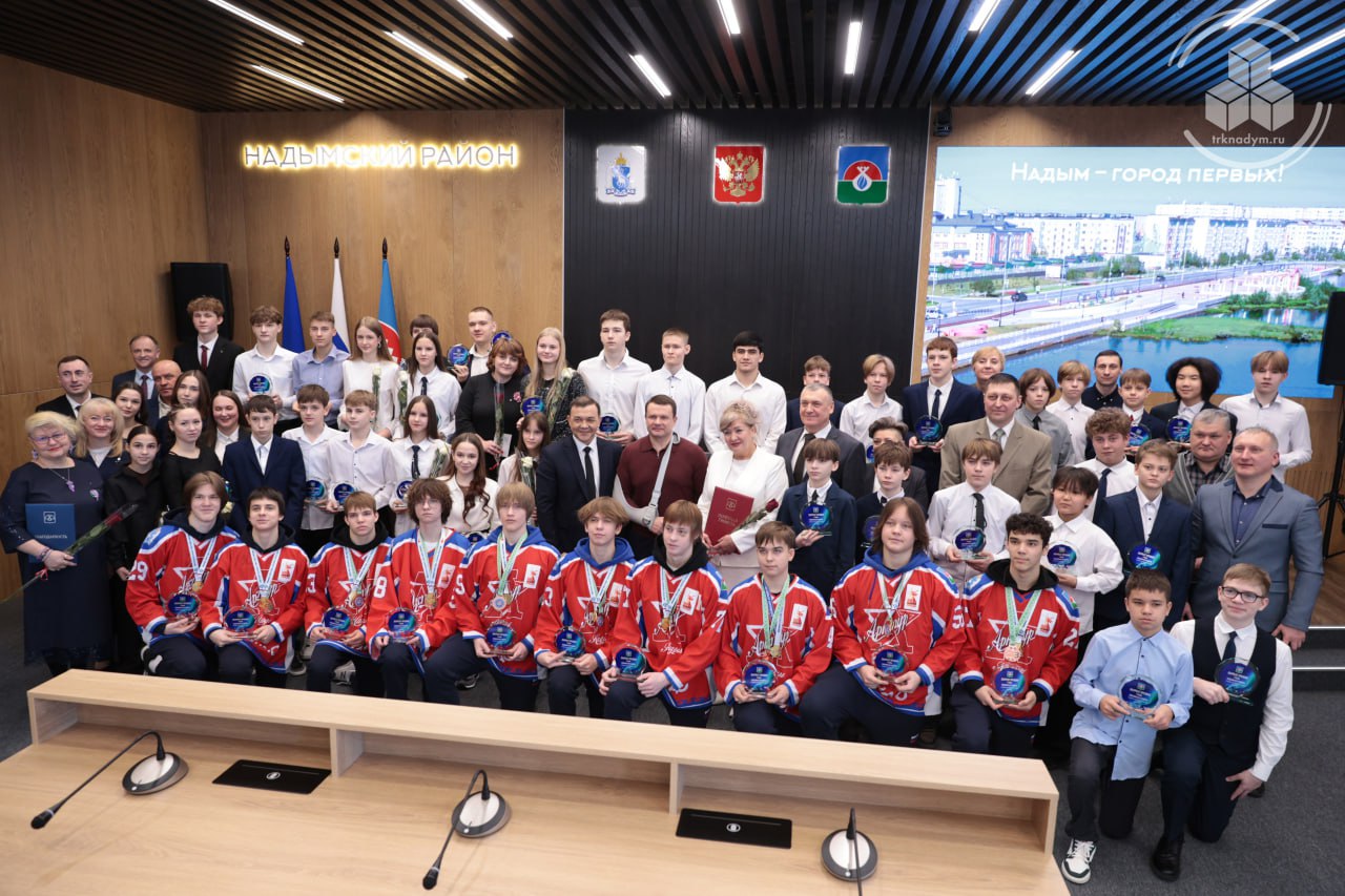 Продолжением торжественной церемонии, посвящённой Дню наставника, стало чествование заслуг спортсменов. За выдающиеся достижения Дмитрий Жаромских вручил юношам и девушкам Премию Главы Надымского района.