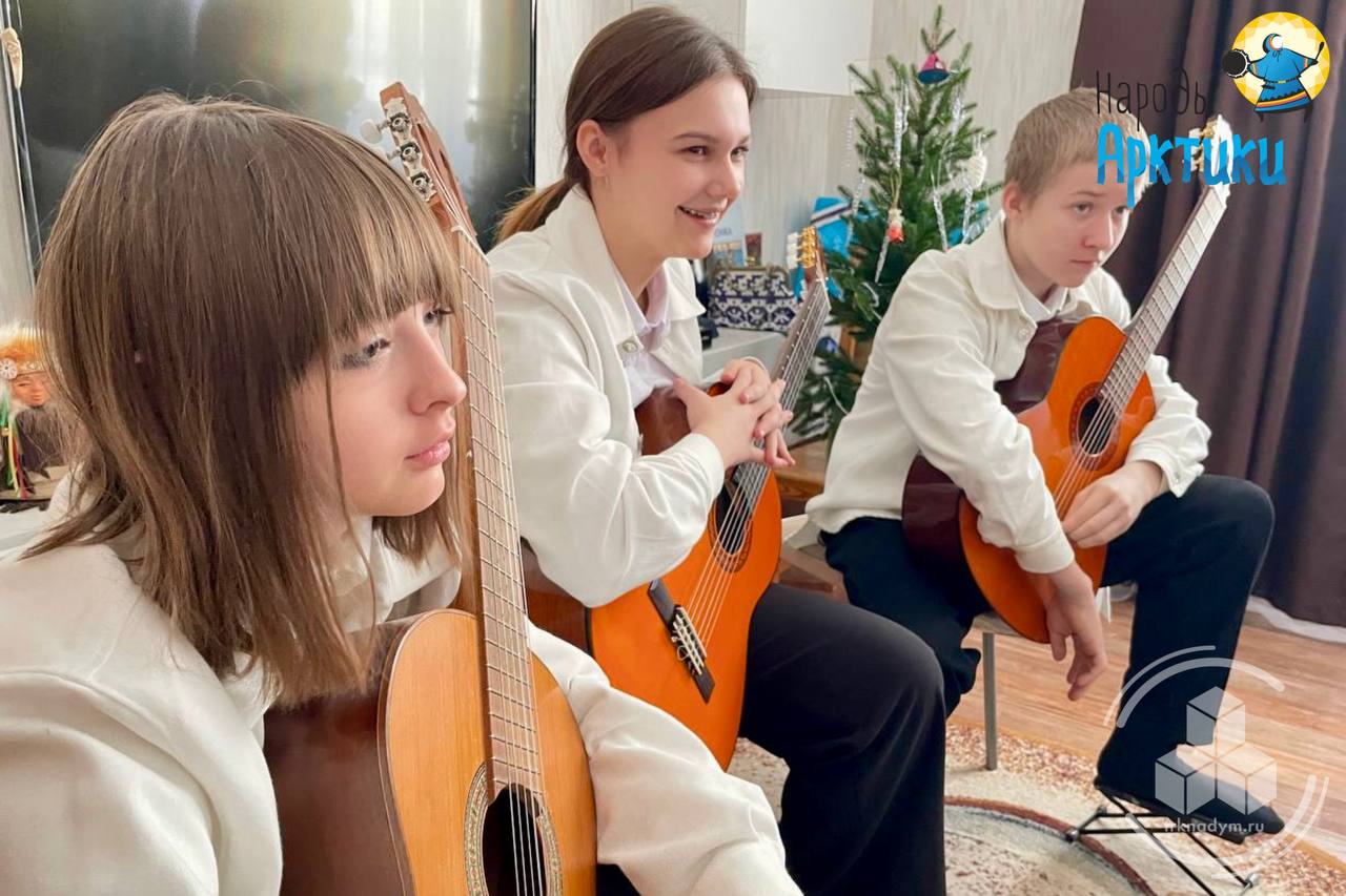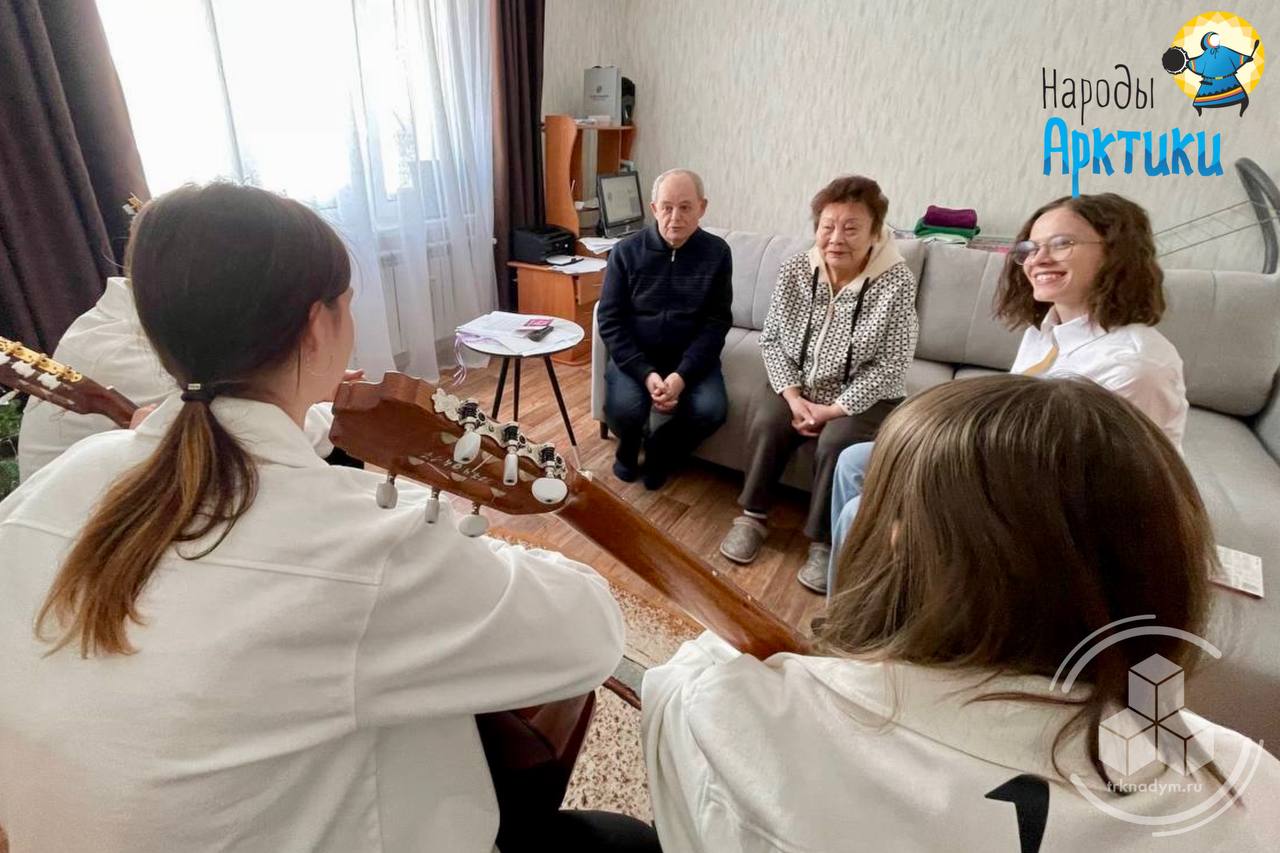 Молодые люди пришли к Нине Николаевне не только с пожеланиями здоровья и долгих лет жизни, но и с гитарами. Трио музыкантов подарило почётному гражданину Ямала три творческих номера и небольшой сладкий подарок
