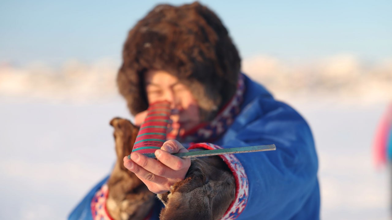 Представьте тундру и бескрайние снежные просторы. Самые крепкие мужчины выходят на площадку — бросают тынзян, прыгают через нарты, меряются силой и ловкостью.