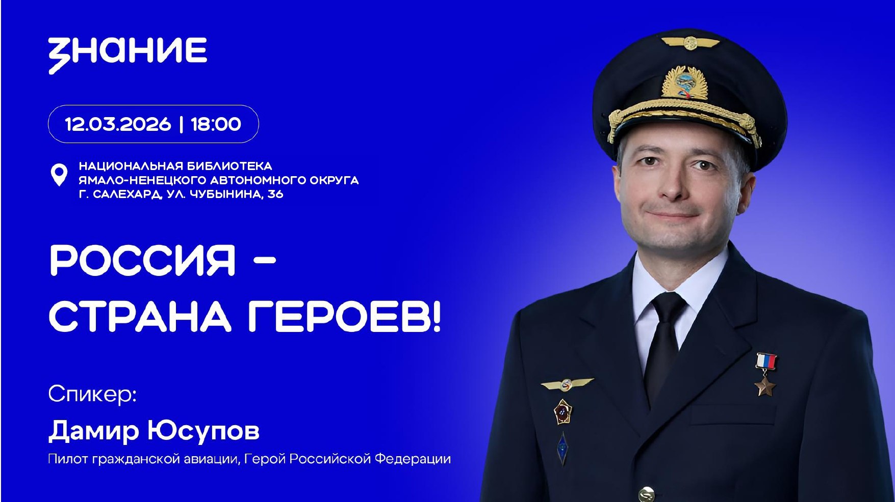 Эту историю знает вся страна, а теперь вы сможете услышать её из первых уст. 12 марта в Национальной библиотеке ЯНАО состоится встреча с легендарным пилотом гражданской авиации Дамиром Юсуповым.