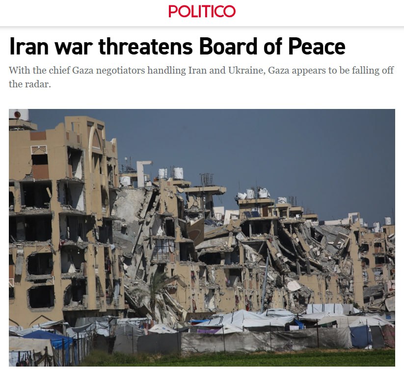 Politico сообщает, что совместная военная операция США и Израиля против Ирана фактически парализовала работу так называемого "Совета мира" — детища Дональда Трампа, которое должно было заняться восстановлением сектора Газа. С момента запуска организация добилась лишь скромных успехов, а теперь и вовсе забуксовала на фоне эскалации в регионе.