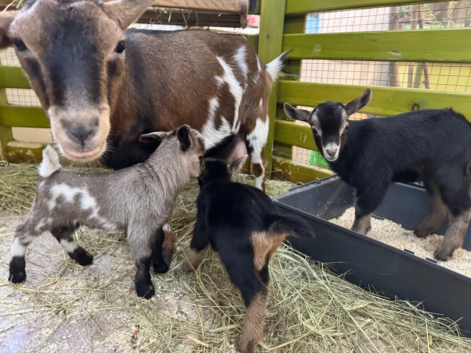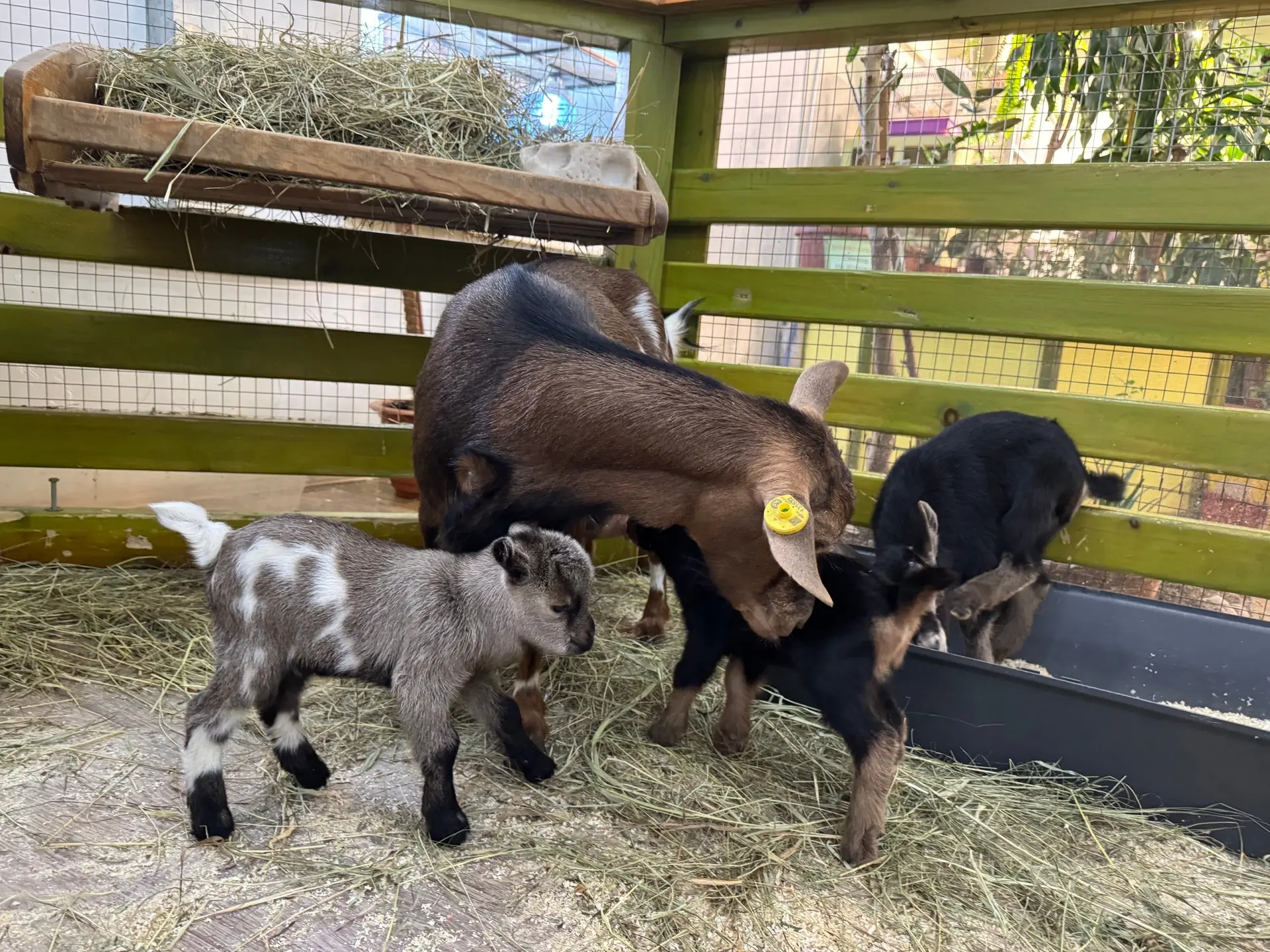 Не прошло и месяца после рождения в семействе камерунских коз козлёнка Вани, как снова пополнение — рождение двойни. Только взгляните на милые семейные фото!