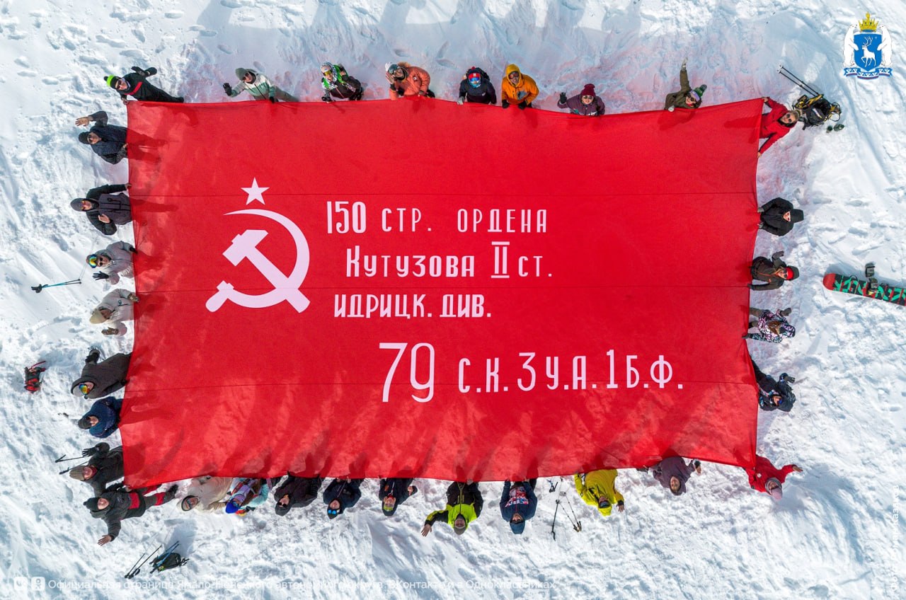 Салехардцы развернули Знамя Победы на горе Поур-Кеу