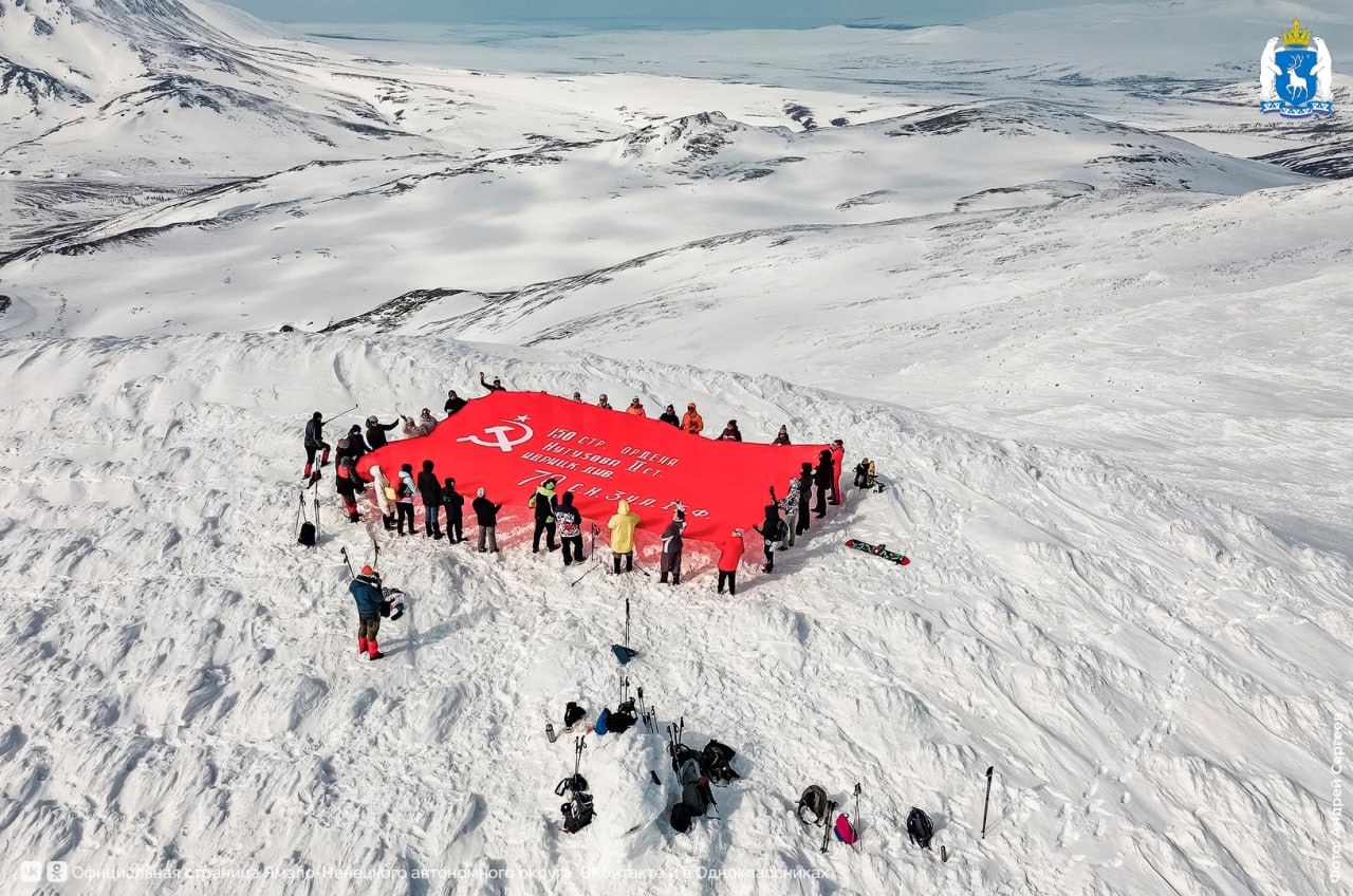 Более 30 энтузиастов из Салехарда и Лабытнанги покорили гору Поур-Кеу. На отметке 876 метров северяне развернули копию Знамени Победы.