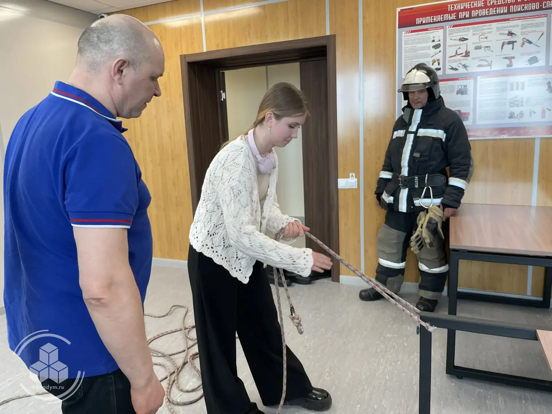 Молодых людей научили вязать пожарные узлы, показали боёвки и средства при помощи которых огнеборцы гасят стихию.