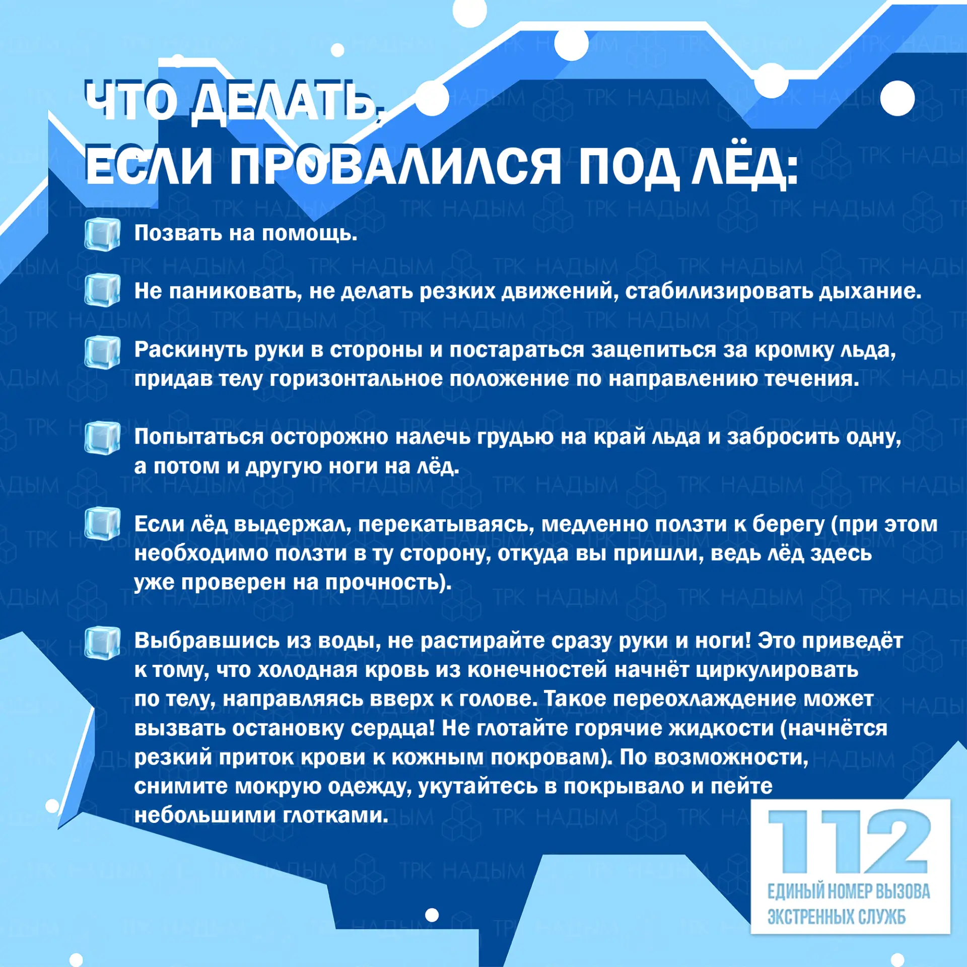 В связи с началом весенней распутицы на территории Надымского района установлен запрет выезда на ледовую поверхность водных объектов самоходных транспортных средств с 04 мая до 01 июля, запрет выхода людей на ледовую поверхность водных объектов с 12 мая до 01 июля.