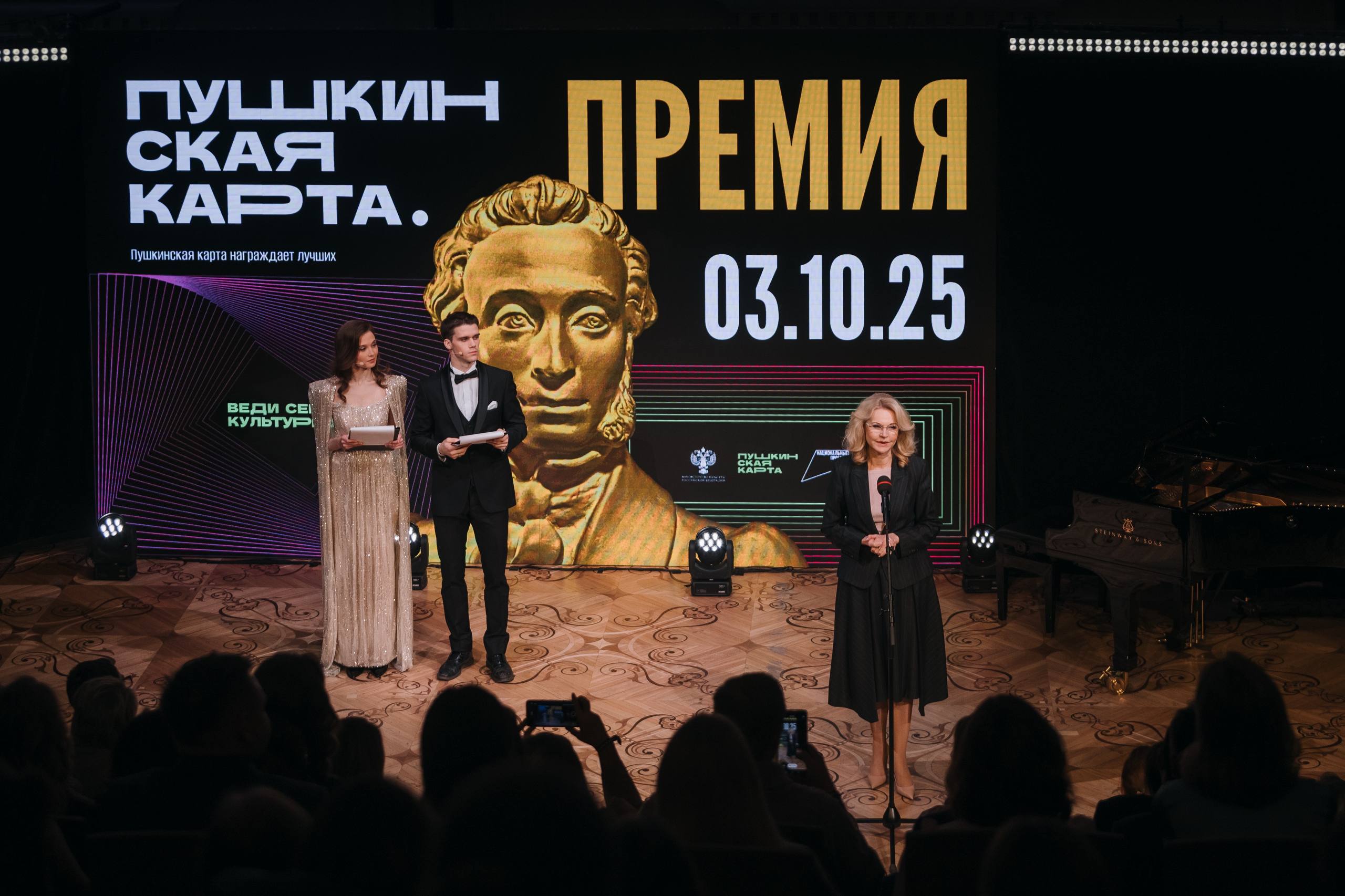 В Бетховенском зале Большого театра состоялась вторая церемония награждения премией «Пушкинская карта. Премия». Лауреатами стали учреждения культуры и регионы, внесшие наибольший вклад в развитие программы «Пушкинская карта» в 2024 году.