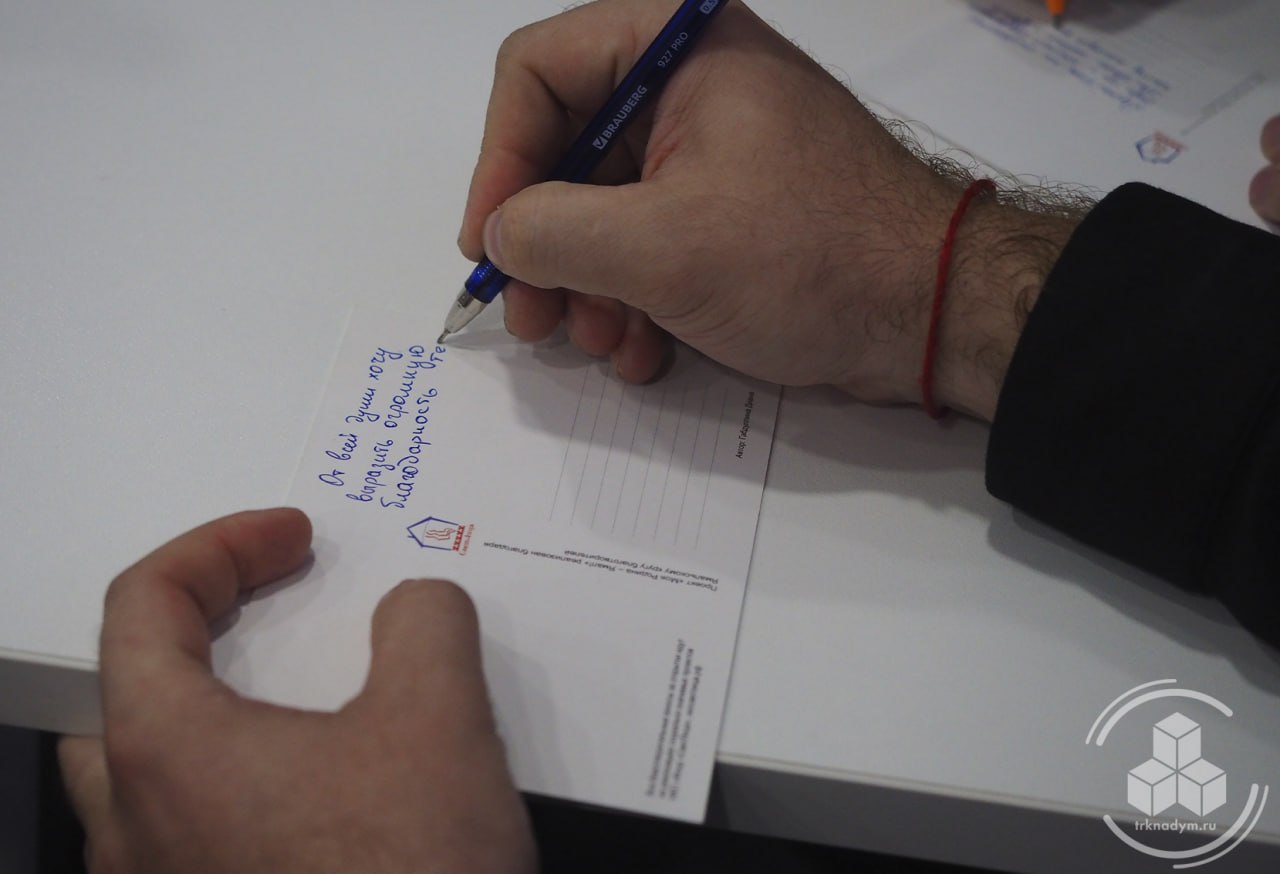 В завершение встречи все вместе на уникальных почтовых открытках написали теплые приветы из дома нашим бойцам, которые будут переданы на передовую.
