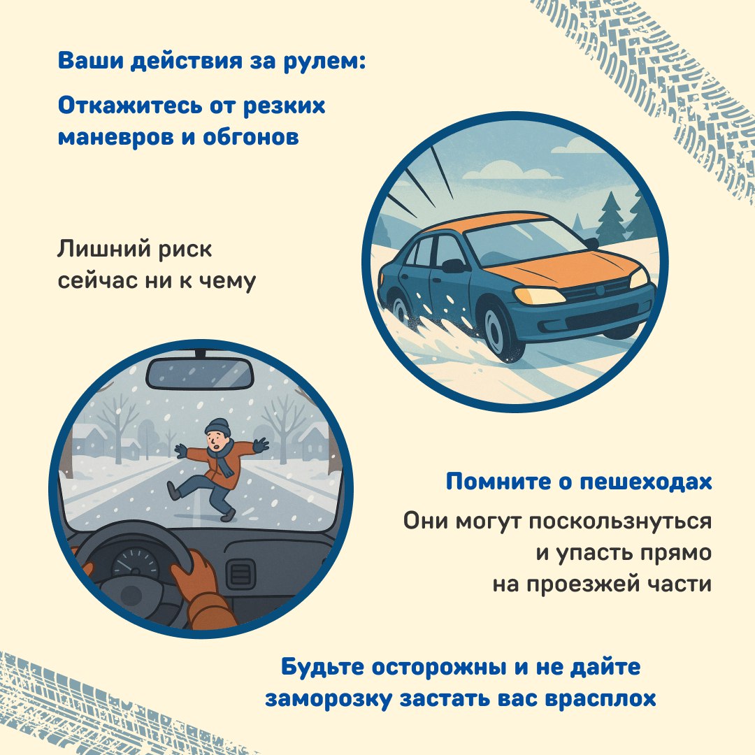 Первые заморозки – не время для резких движений. Температура за окном опускается ниже нуля, а это значит, что на дорогах может появиться коварный гололёд. Он невидим и особенно опасен после дождя или влажной погоды.