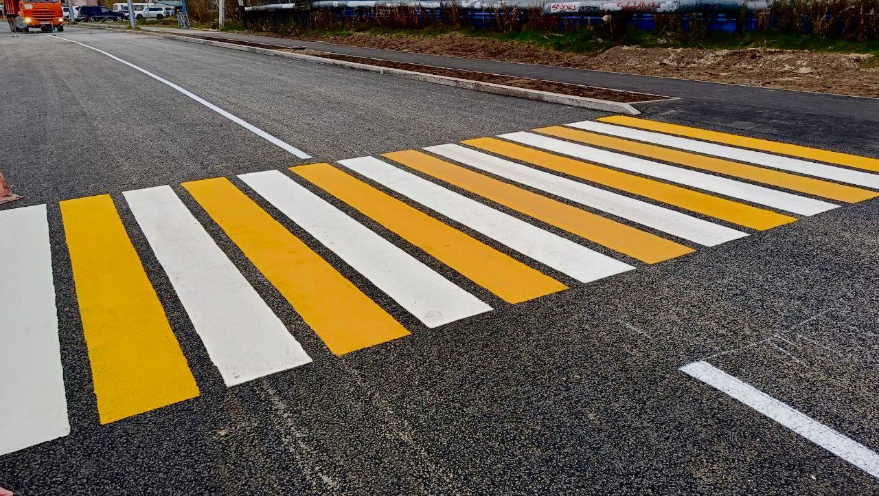 Уже сегодня здесь можно увидеть новое асфальтовое покрытие, бордюры и тротуары. Дорожники наносят разметку, впереди — установка и настройка светофора, дорожных знаков и системы освещения.