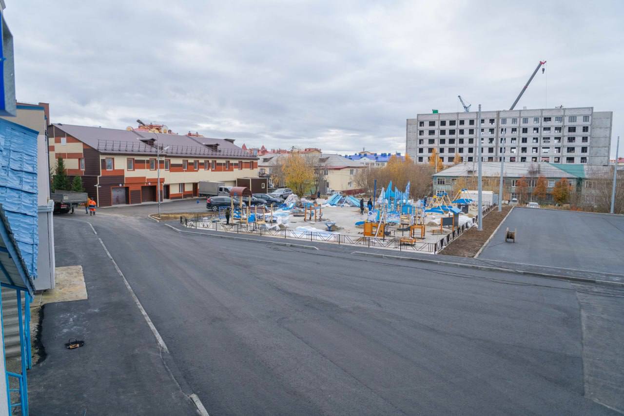 Продолжаем благоустройство дворовых территорий в Салехарде. Сегодня во дворе дома №9 по ул. Мира кипит работа. Подрядчик приступил к установке современной детской игровой площадки. Уже заасфальтированы проезды, на месте снесенного здания общежития обустроена большая парковка для автомобилей.