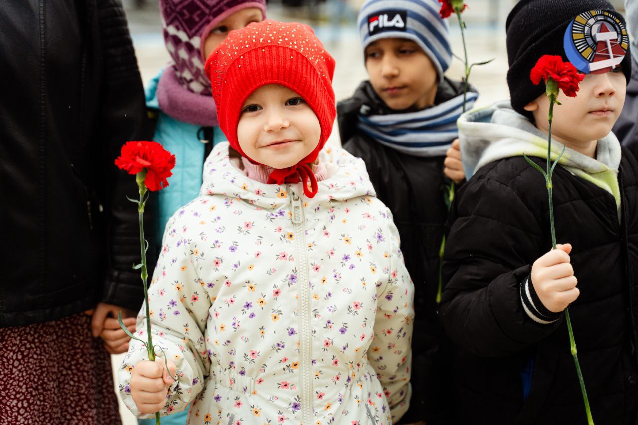 Площадь Памяти - дошколята возложили цветы к Вечному огню, почтив память героев