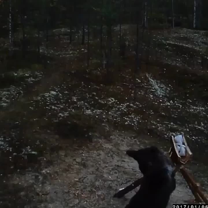 В Пякольском заказнике косолопый засветился в фотоловушке. Медведь вышел на проверку солонцов и сразу отведал угощение.