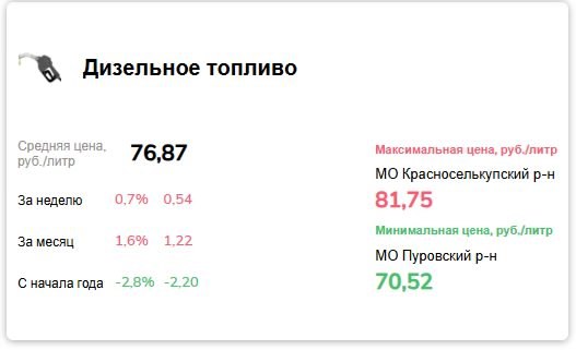 В округе наблюдается рост цен на бензин, особенно заметно это по АИ-92. Дизельное топливо пока демонстрирует умеренный рост, но с начала года его стоимость снизилась.