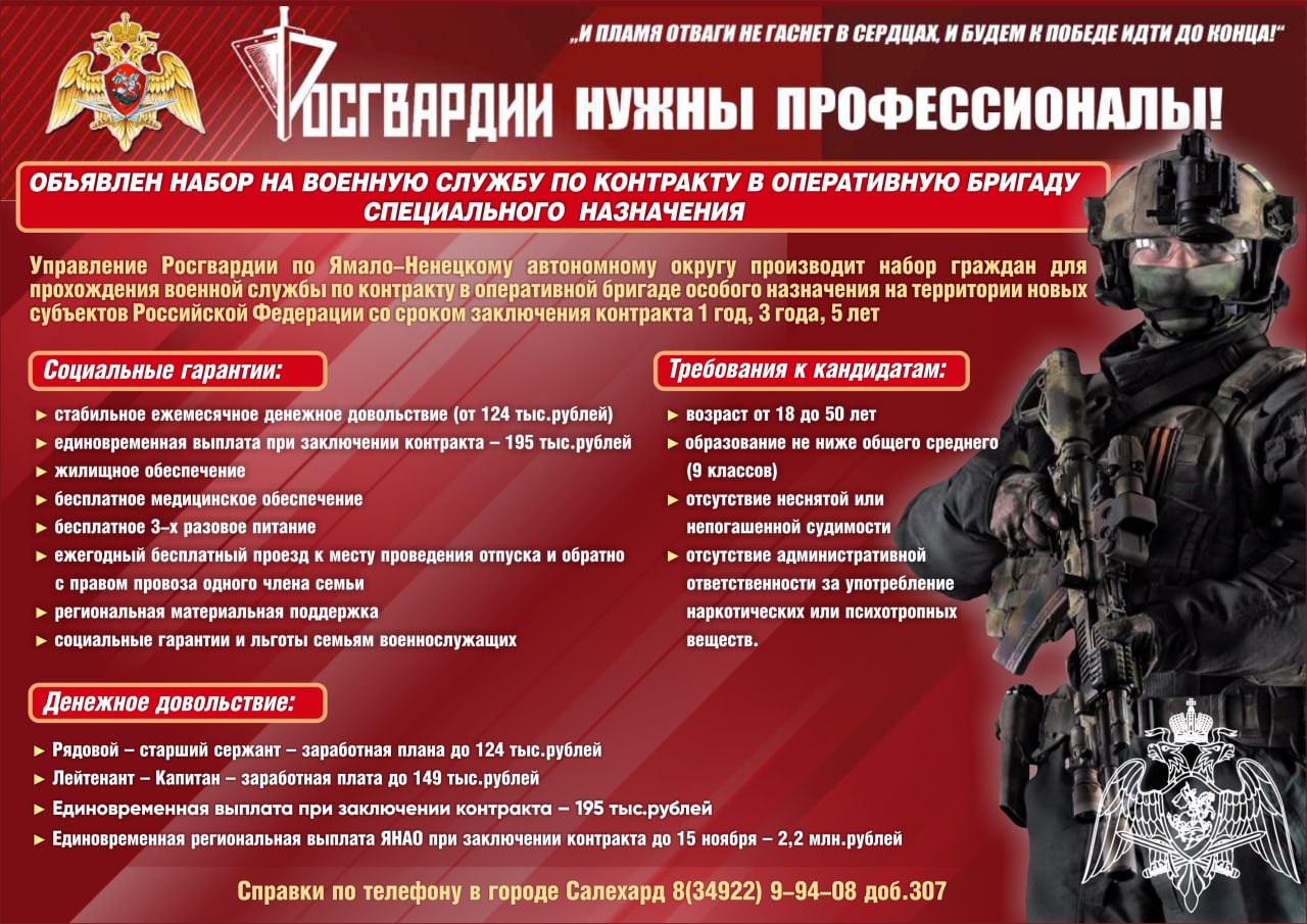 Управление Росгвардии по ЯНАО объявляет набор на военную службу по контракту в бригаду особого назначения