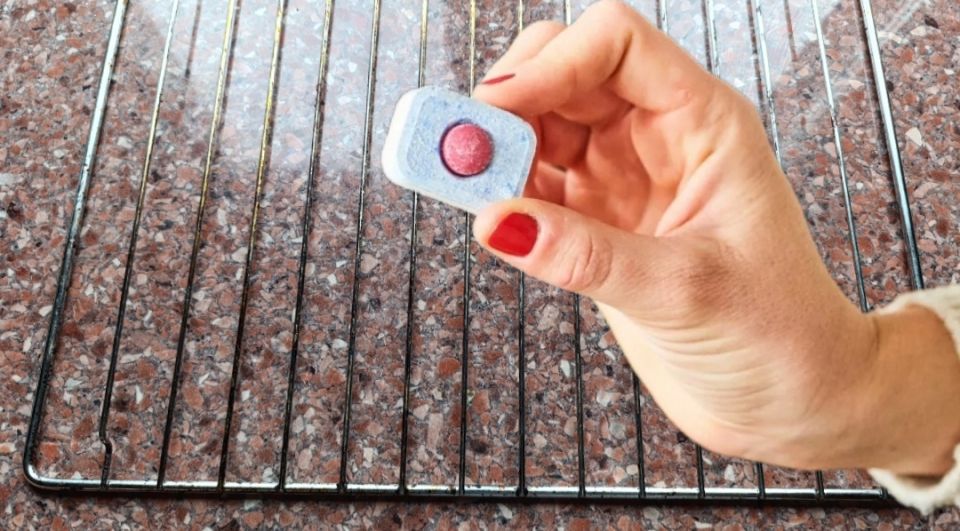 - Таблетка для посудомоечной машины: Оберните решетку фольгой и замочите её в горячей воде с таблеткой для посудомойки. Эта комбинация творит чудеса!