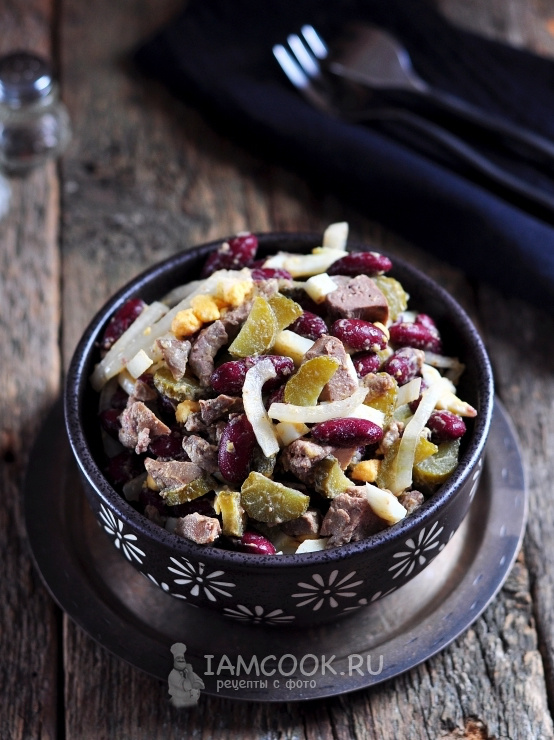 Этот салат привлекает внимание не только своим ярким вкусом, но и простотой приготовления. Пока печень варится, яйца почти готовы, а лук комфортно маринуется. Овощи нарезаются с лёгкостью, а фасоль просто открывается из банки. Этот лёгкий, но при этом питательный салат станет отличной закуской на ужин или полноценным блюдом для праздничного стола, сообщает Дзен-канал "Рецепты с фото и видео - только лучшее от Аймкук".