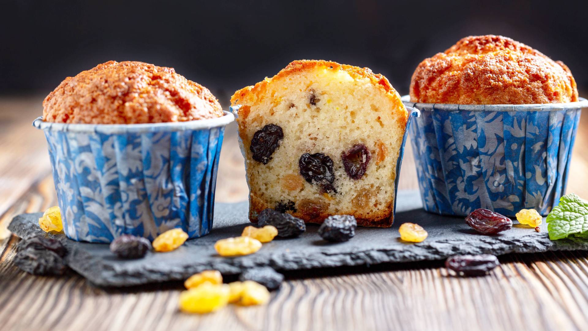 Добавьте изюм в самом конце и еще раз тщательно перемешайте. Формы для кексов смажьте растительным маслом и слегка присыпьте мукой. Далее заполняйте тестом каждую емкость до половины, чтобы осталось свободное пространство.