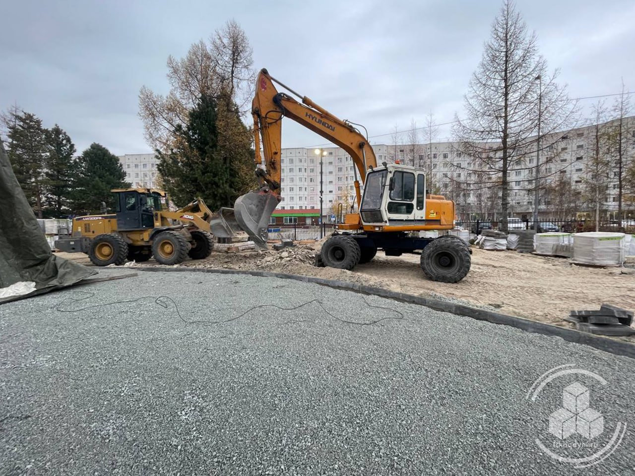 К этому же времени (30-му октября) обещают благоустроить и парк имени Евгения Козлова. Тут стройка ведётся силами двух подрядчиков. Сейчас укладывается брусчатка (уже уложено 50%), собираются МАФы (малые архитектурные формы), и достраивают амфитеатр. Местный Колизей будет вмещать 50 зрителей.