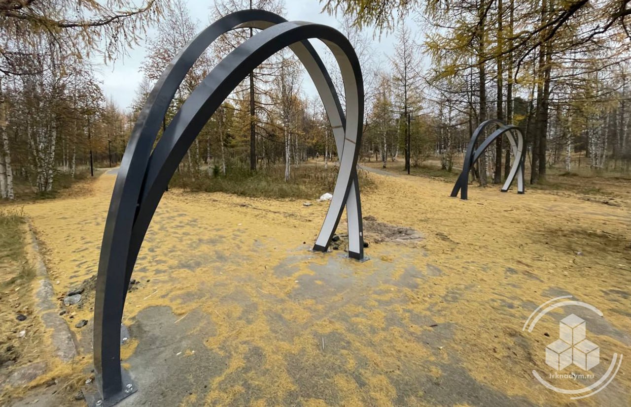 Сейчас на входе в парк уже красуются три арки (для любителей селфи). Скоро установят качели и вазоны. Обещают, что МАФы будут с подсветкой. Причем производитель малых архитектурных форм даёт на свою красоту гарантию 5 лет. Т.е. если, что-то сломается, то можно будет предъявить.