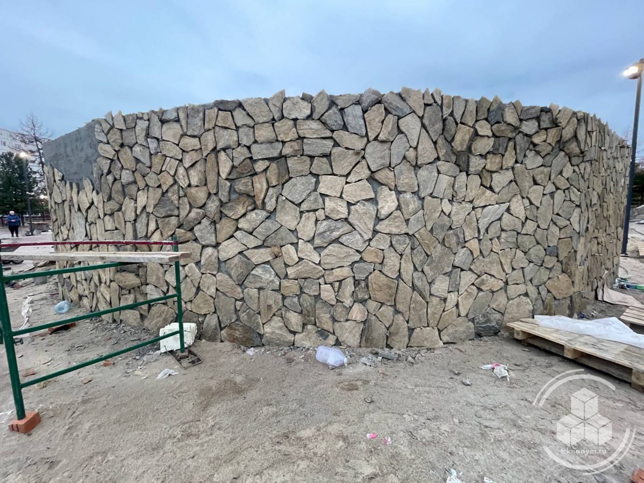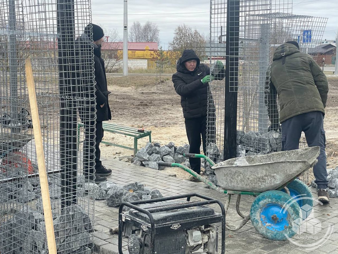На строящейся площадке для четвероногих друзей подрядчик собирает габионы на входе (это такие клетки с камнем внутри) и готовится обнести территорию по периметру забором, который привезли на днях.