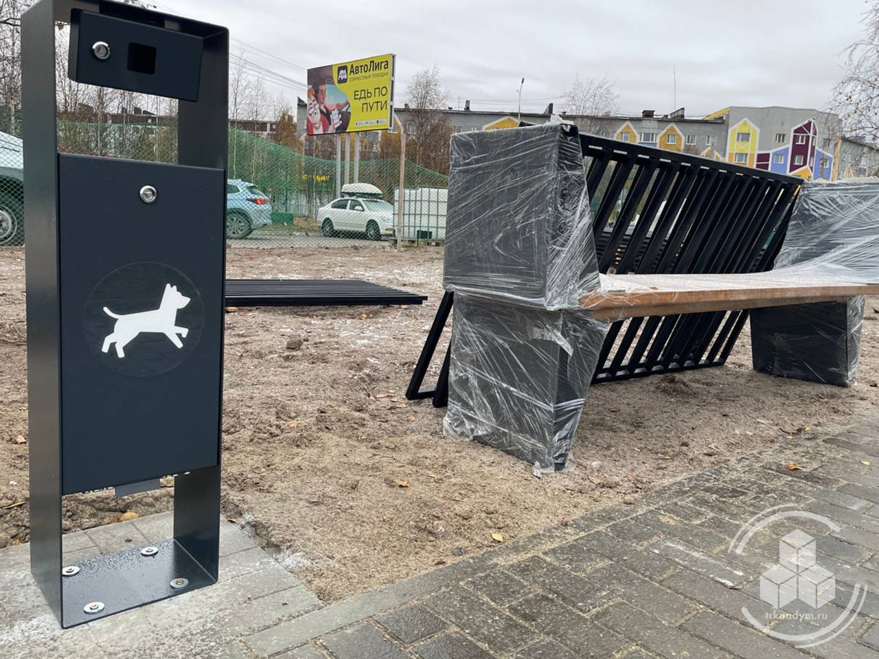 А так, тут уже почти всё готово. Установили скамейки для хозяев, урны для отходов, тренажёры для мохнатых атлетов. А ещё сделали освещение и засеяли газоны, которые, правда, взойдут только в следующем году. Сроки завершения работ здесь до 30 октября.